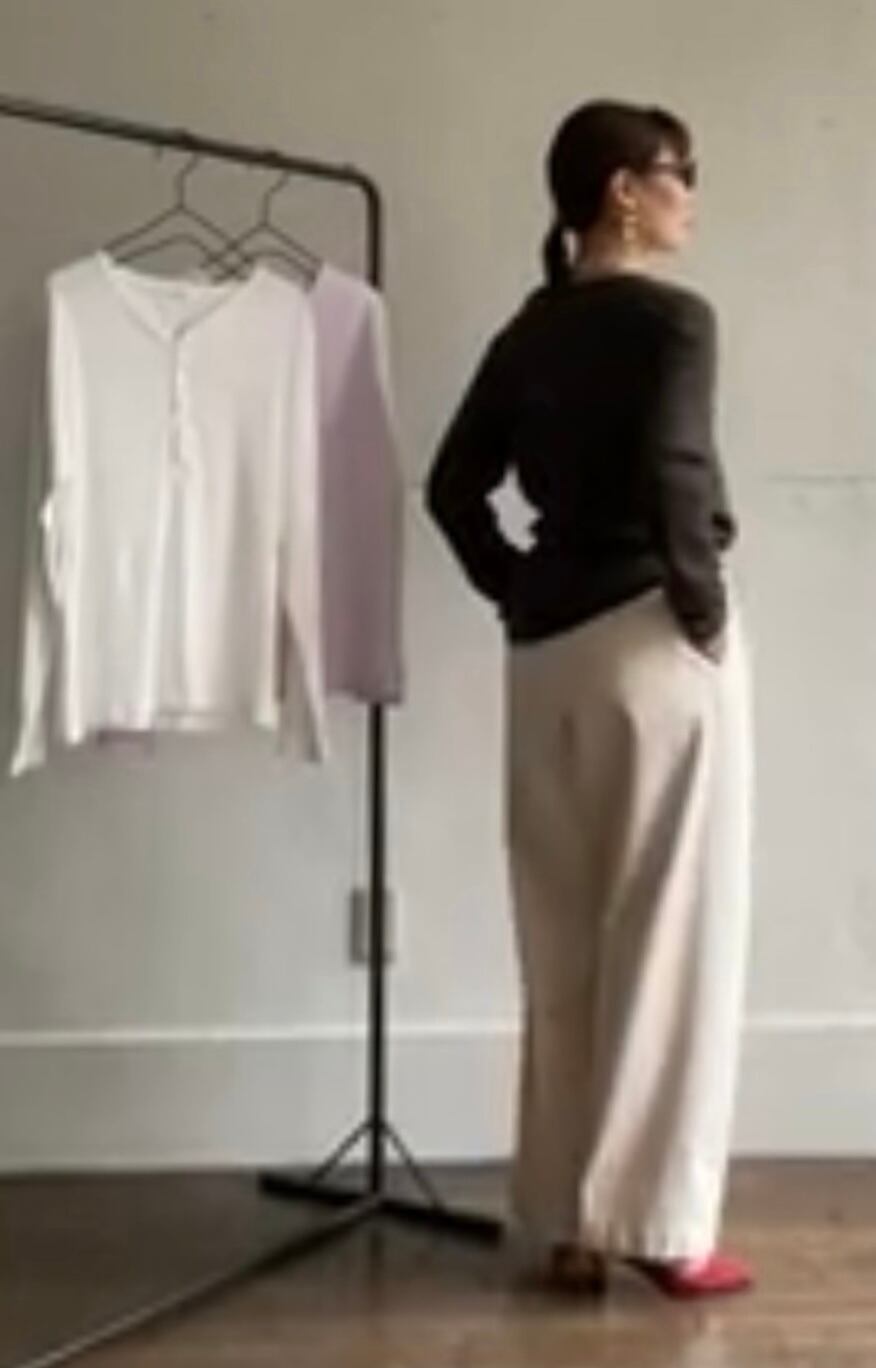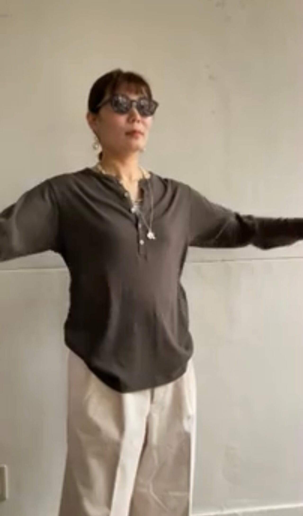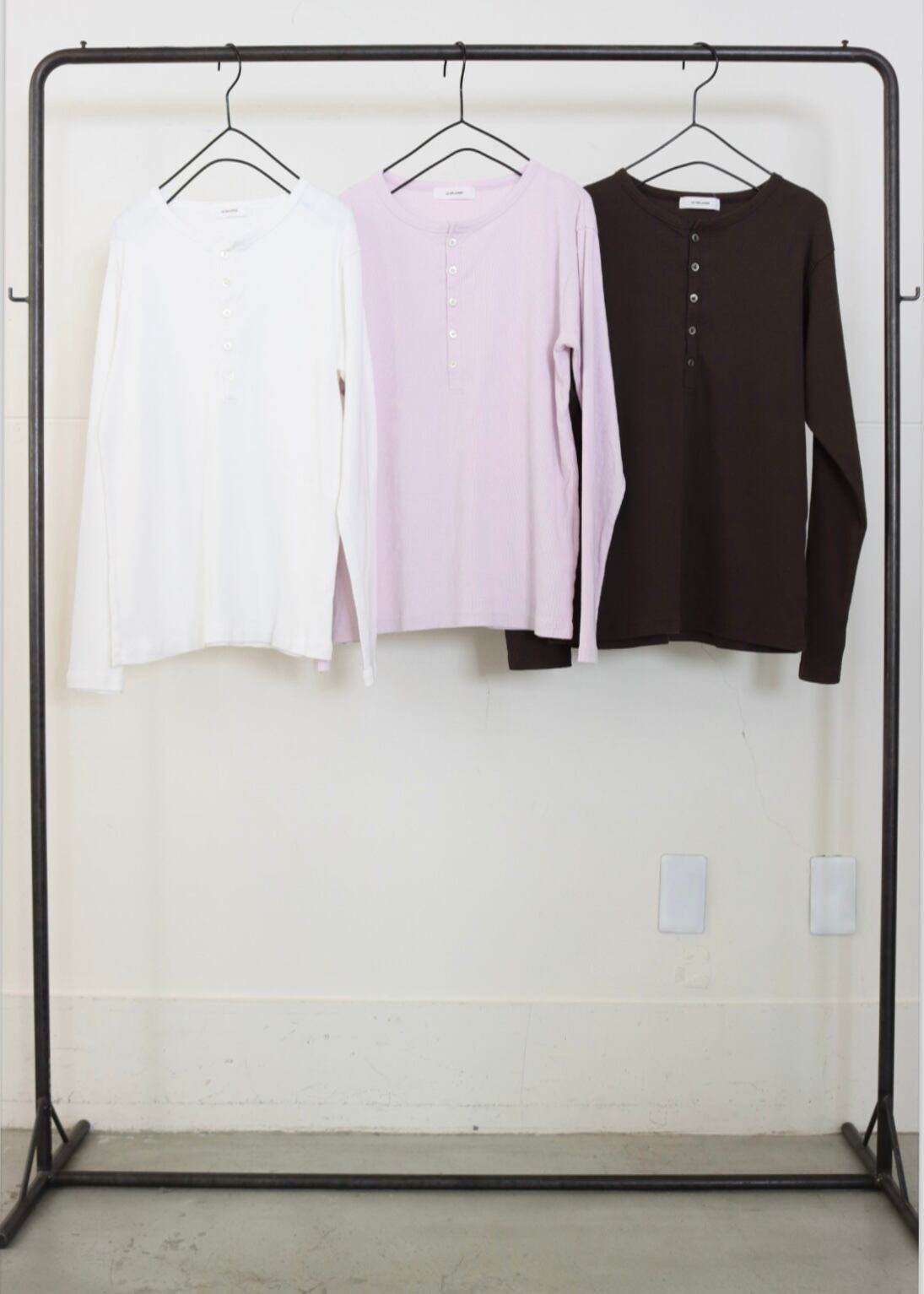 ヘンリーネックロングTシャツ。