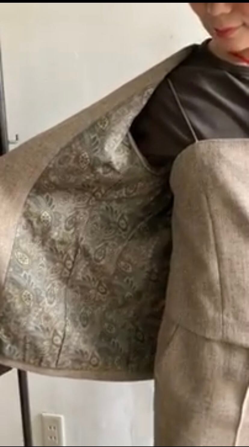 身頃裏地はペイズリー柄を使用、袖裏は滑りを考慮してポリエステル仕様になっております。