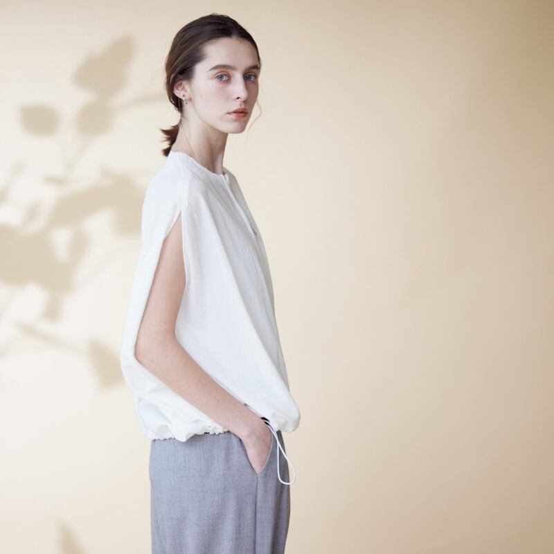 JAPANFABRICで東炊き染めされたラウンドボリュームドロストベスト。