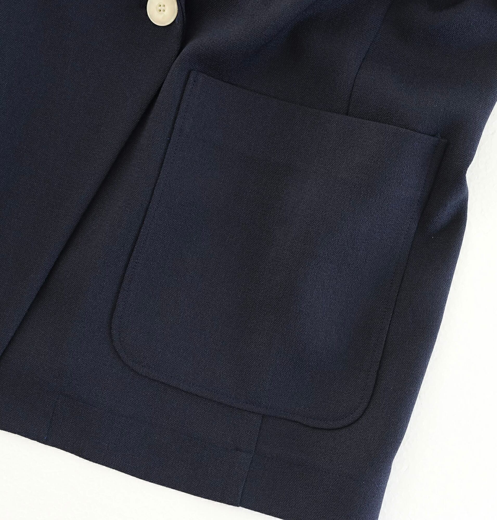 裏地なしで配色のパイピングを施しています。着丈はヒップが隠れるくらいの少し長め丈。