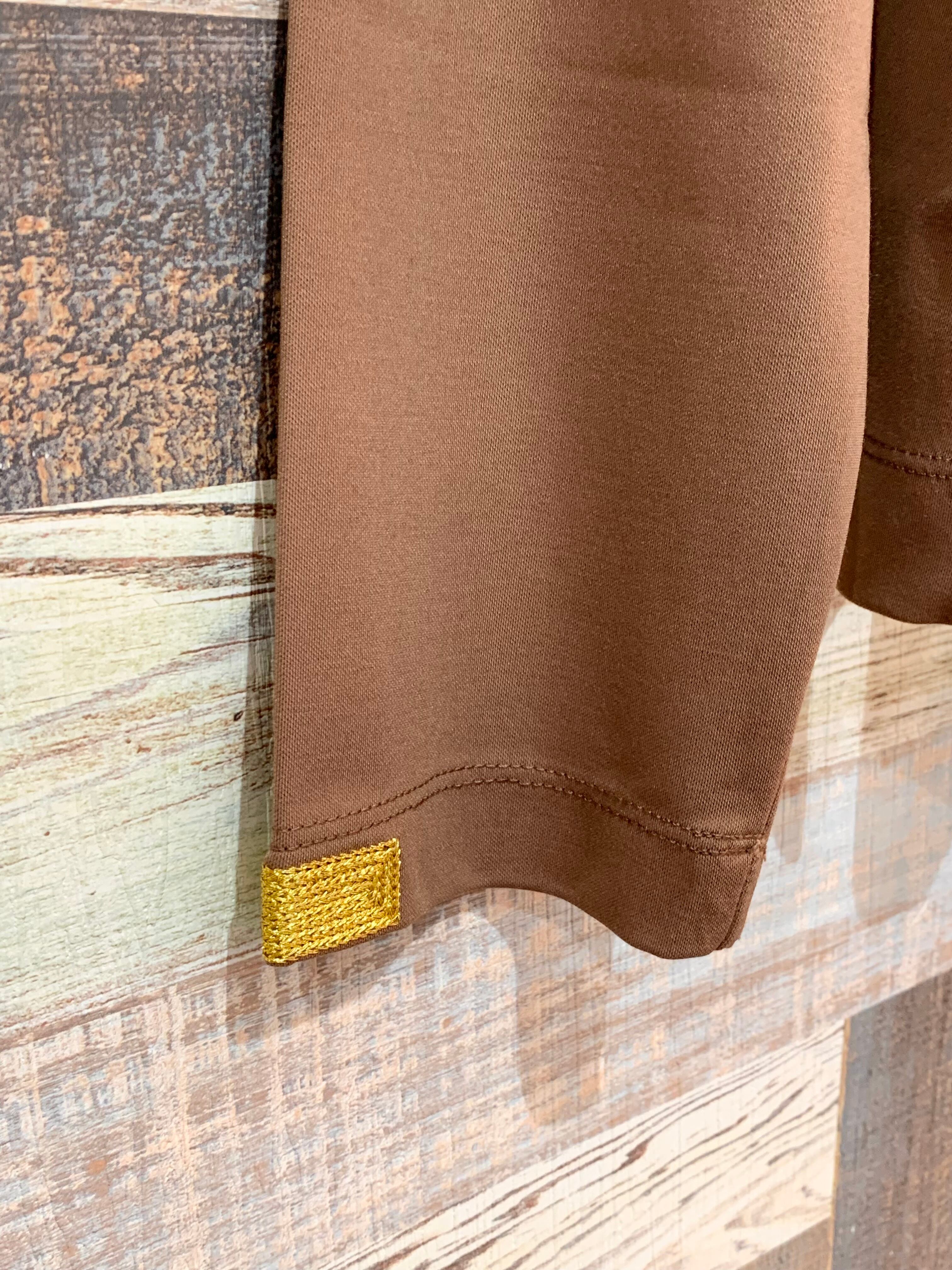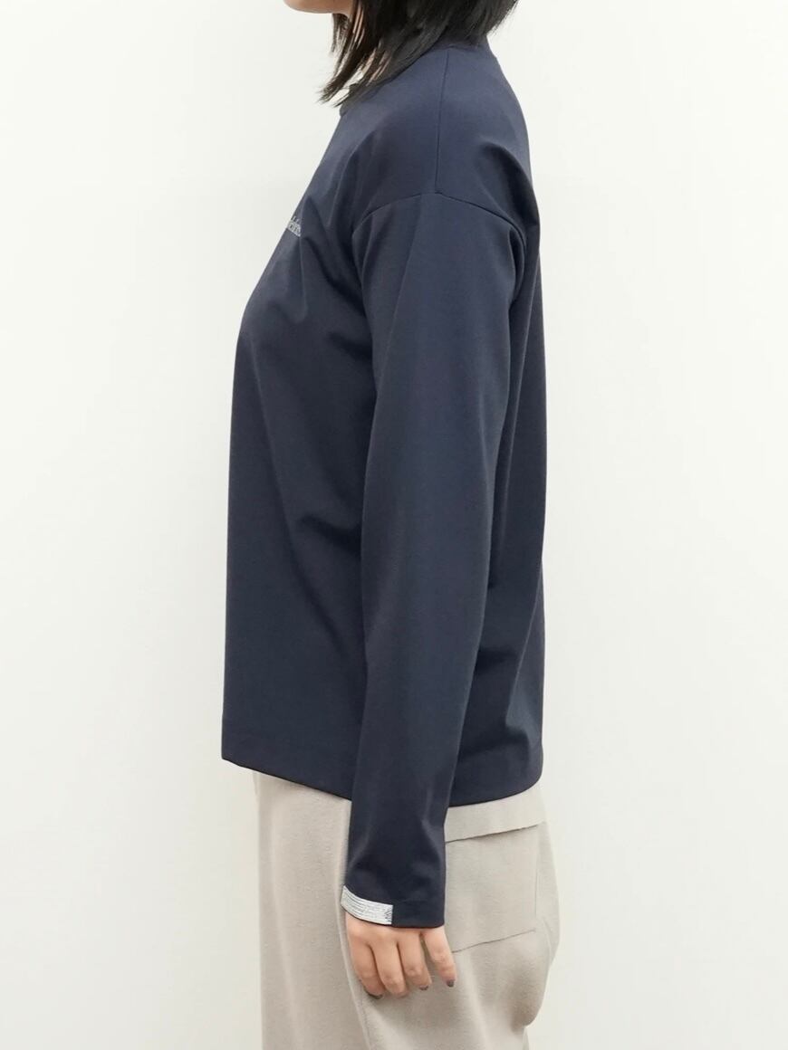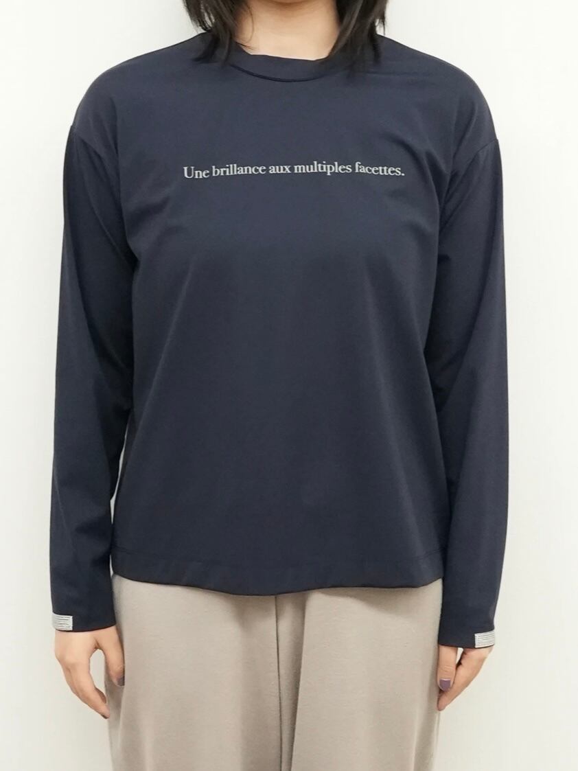 胸にロゴプリントと、袖口にラメ刺繍を施したロングTシャツ。