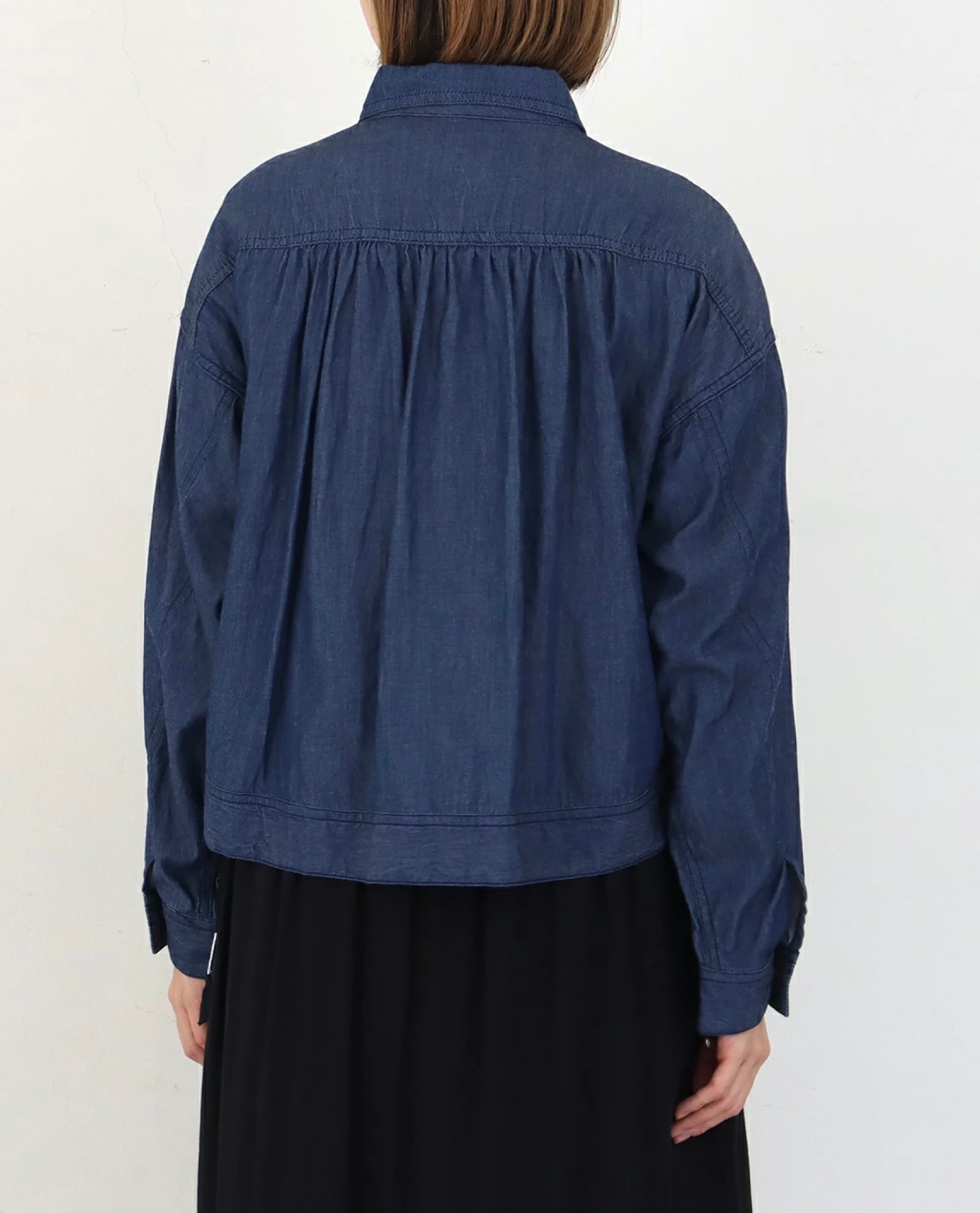 後ろにギャザーが入りバックセンター丈が長い後ろ下がりの丸いシルエットです。