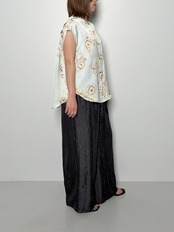 フレンチの袖丈で気になる部分もカバーでき、同素材のパンツ、スカートとセットアップで着用するとワンピースやコンビネゾンのようなスタイリングアレンジができるシリーズになります。