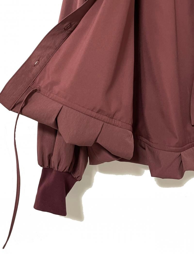 裾には紐を入れ、自由にシルエットを変化できるようになっているのと、様々なボトムと合わせやすいショート丈になっています。