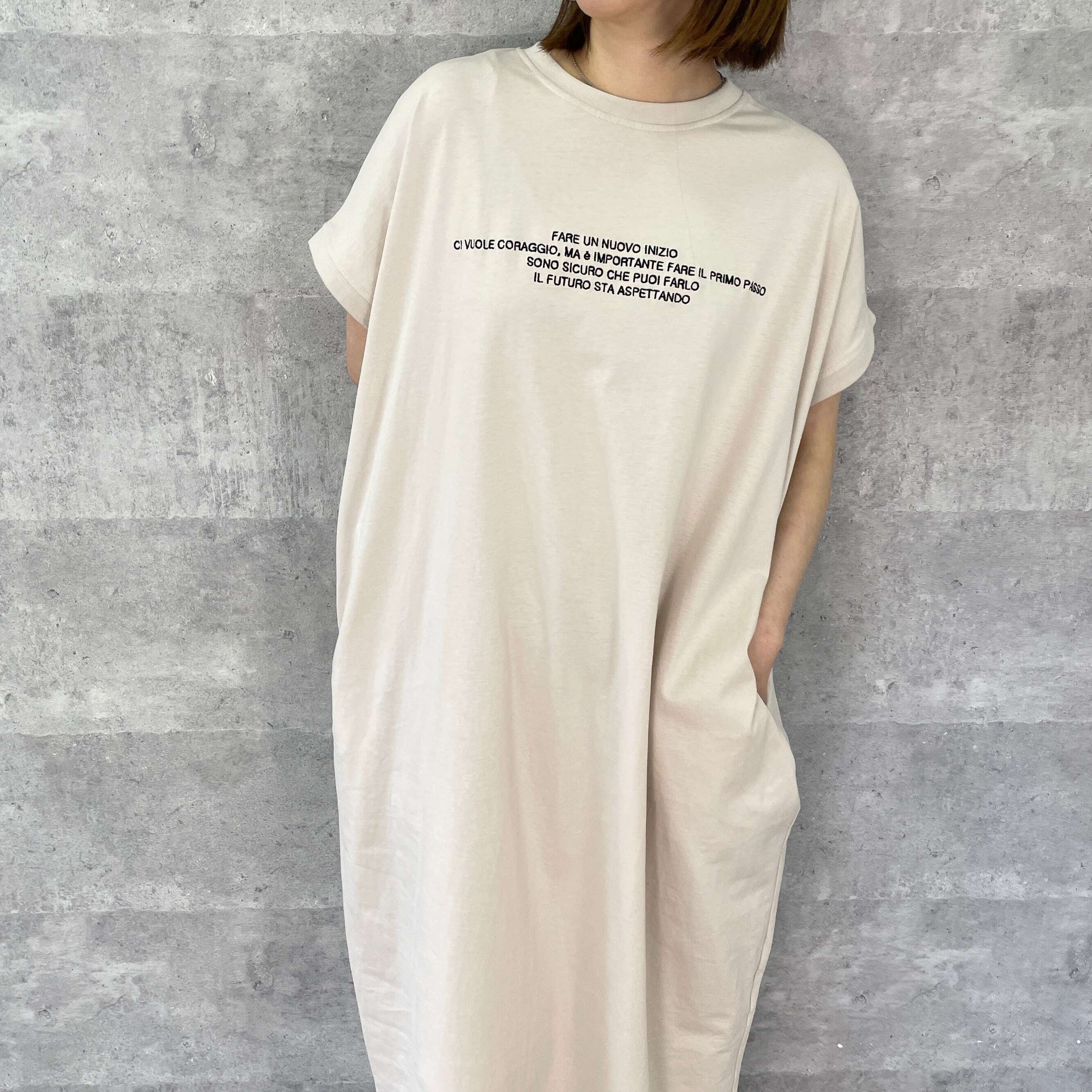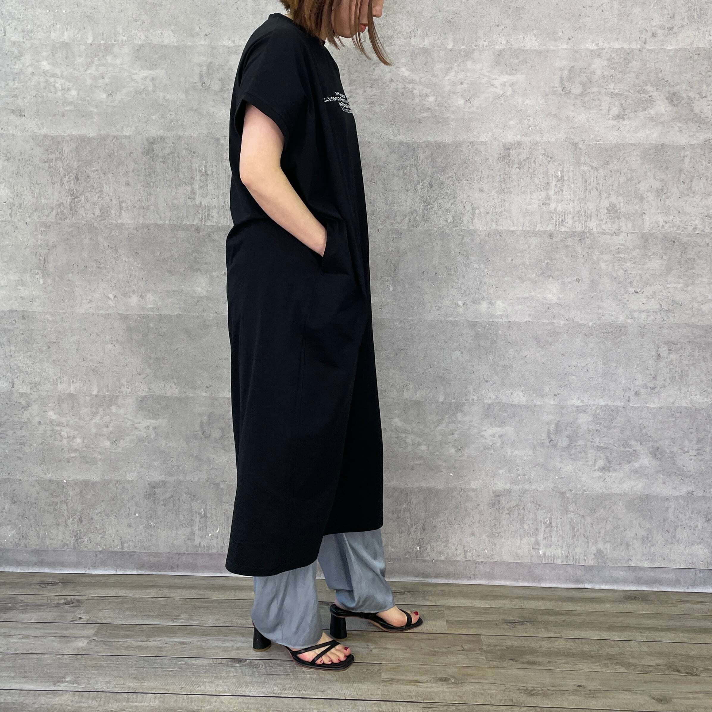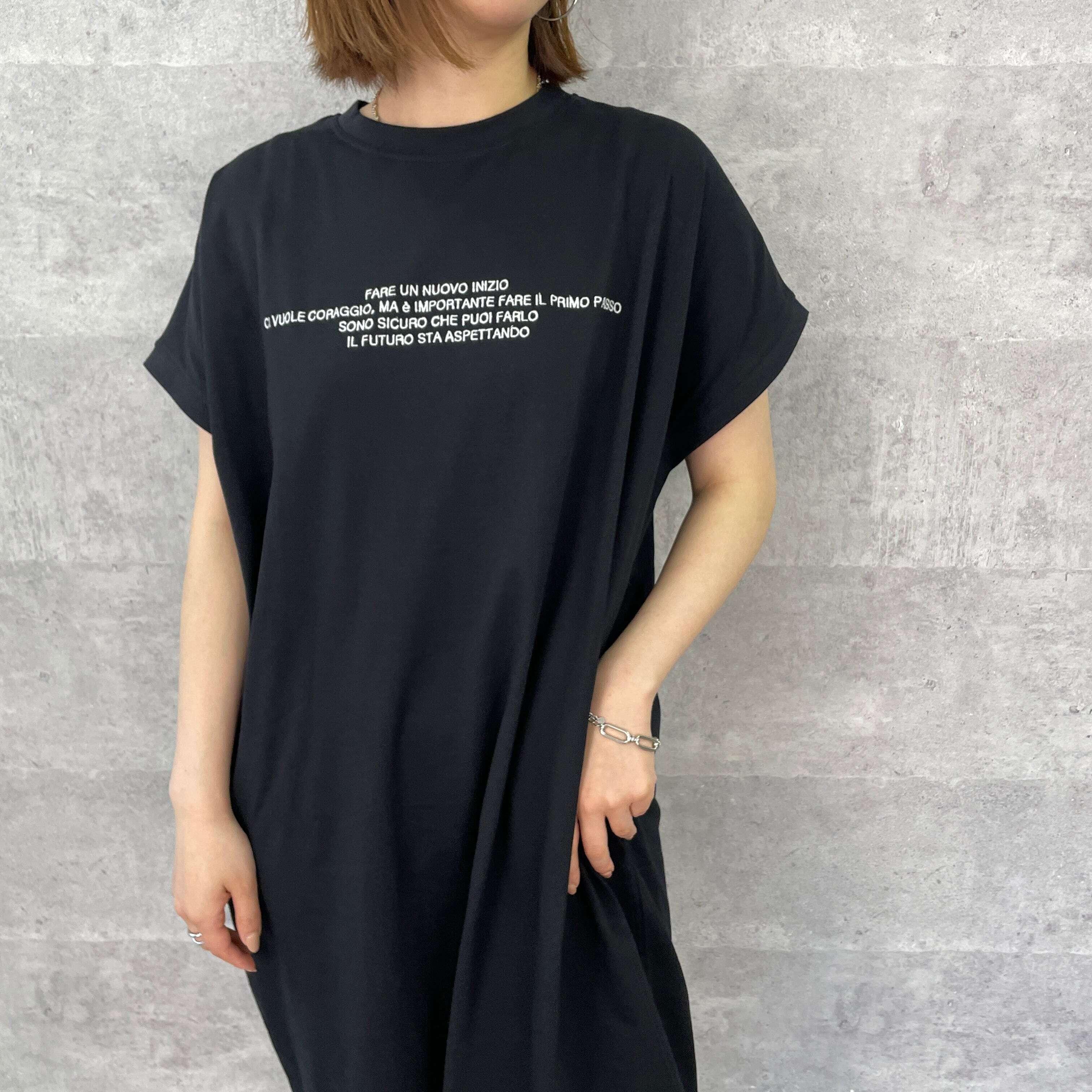 フロントに刺繍ロゴを施し、フレンチスリーブが腕のラインをカバーしつつ、大人っぽく着られるシルエットが魅力のワンピース。