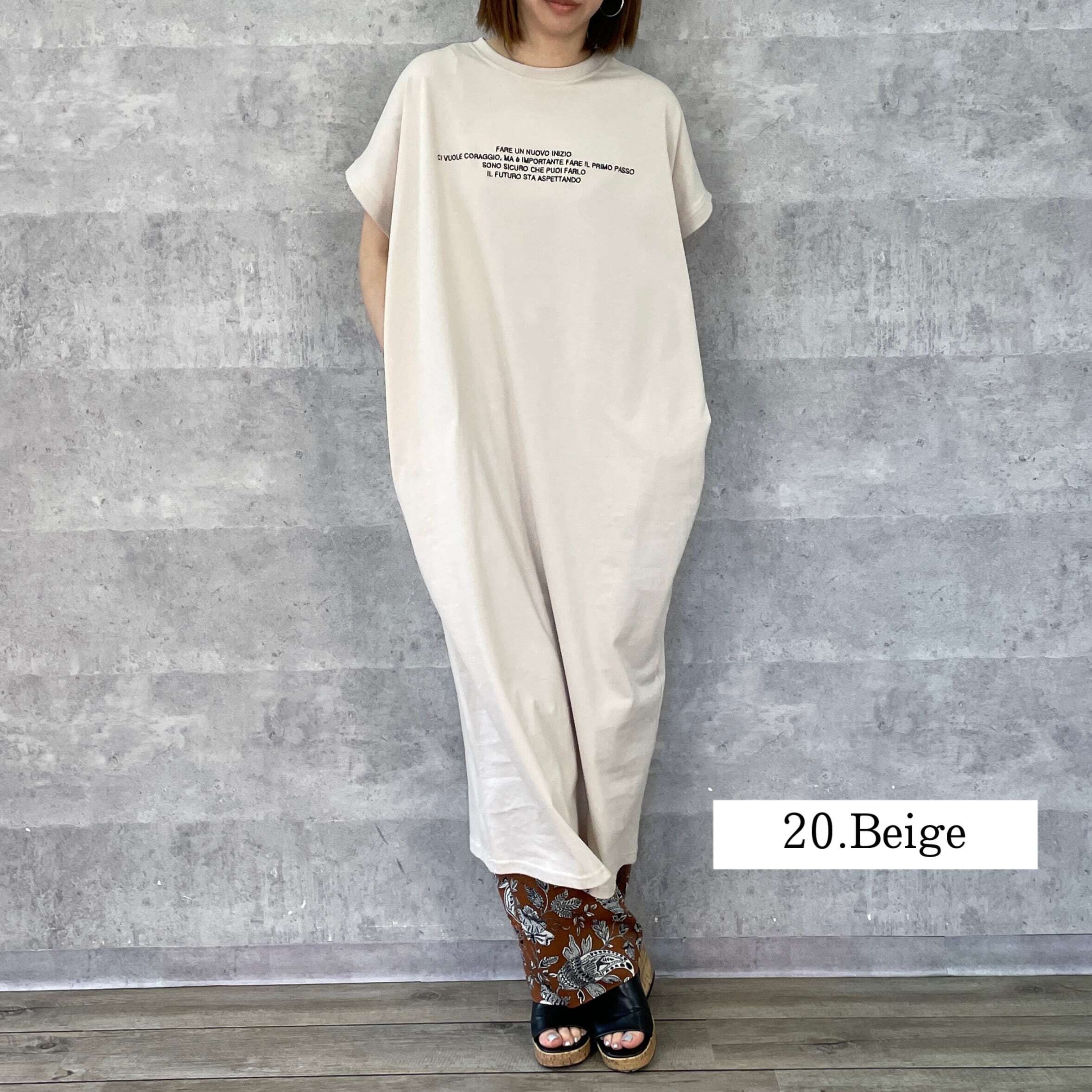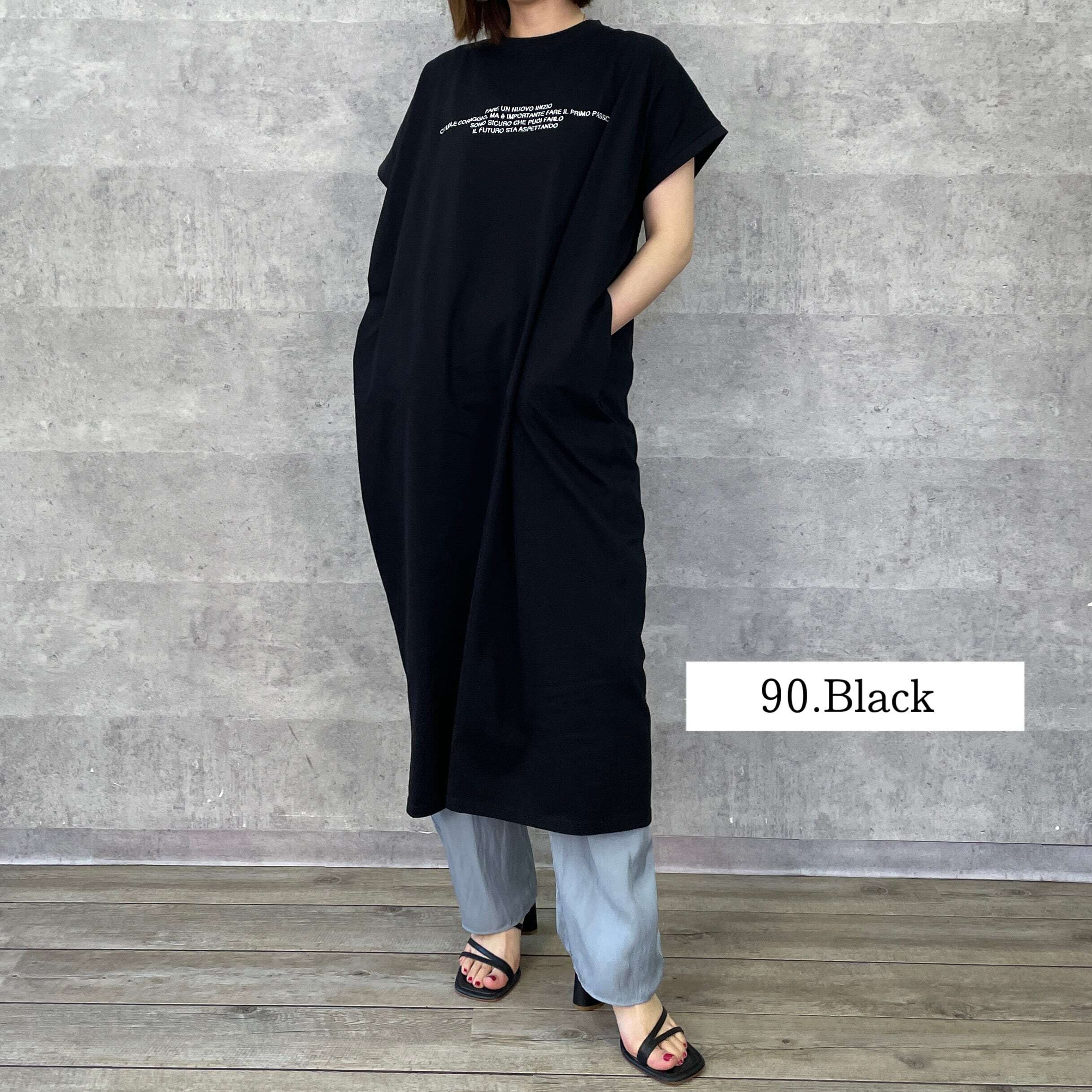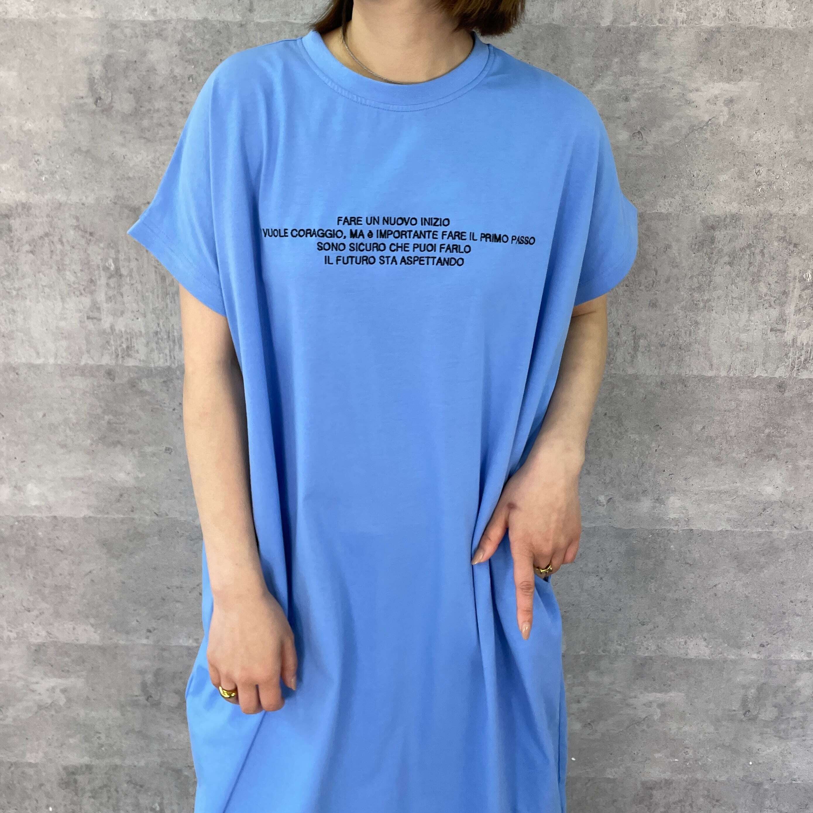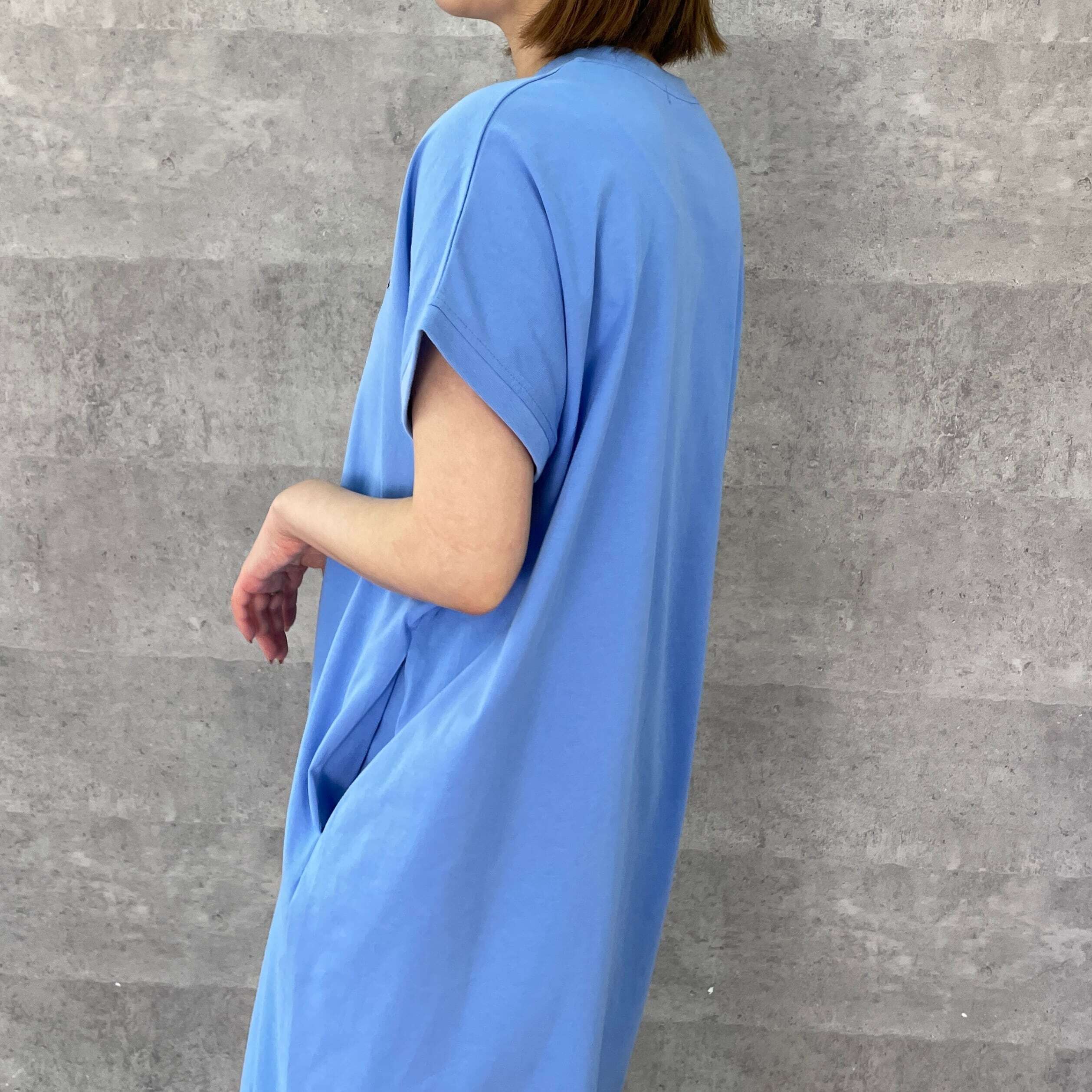 フロントに刺繍ロゴを施し、フレンチスリーブが腕のラインをカバーしつつ、大人っぽく着られるシルエットが魅力のワンピース。