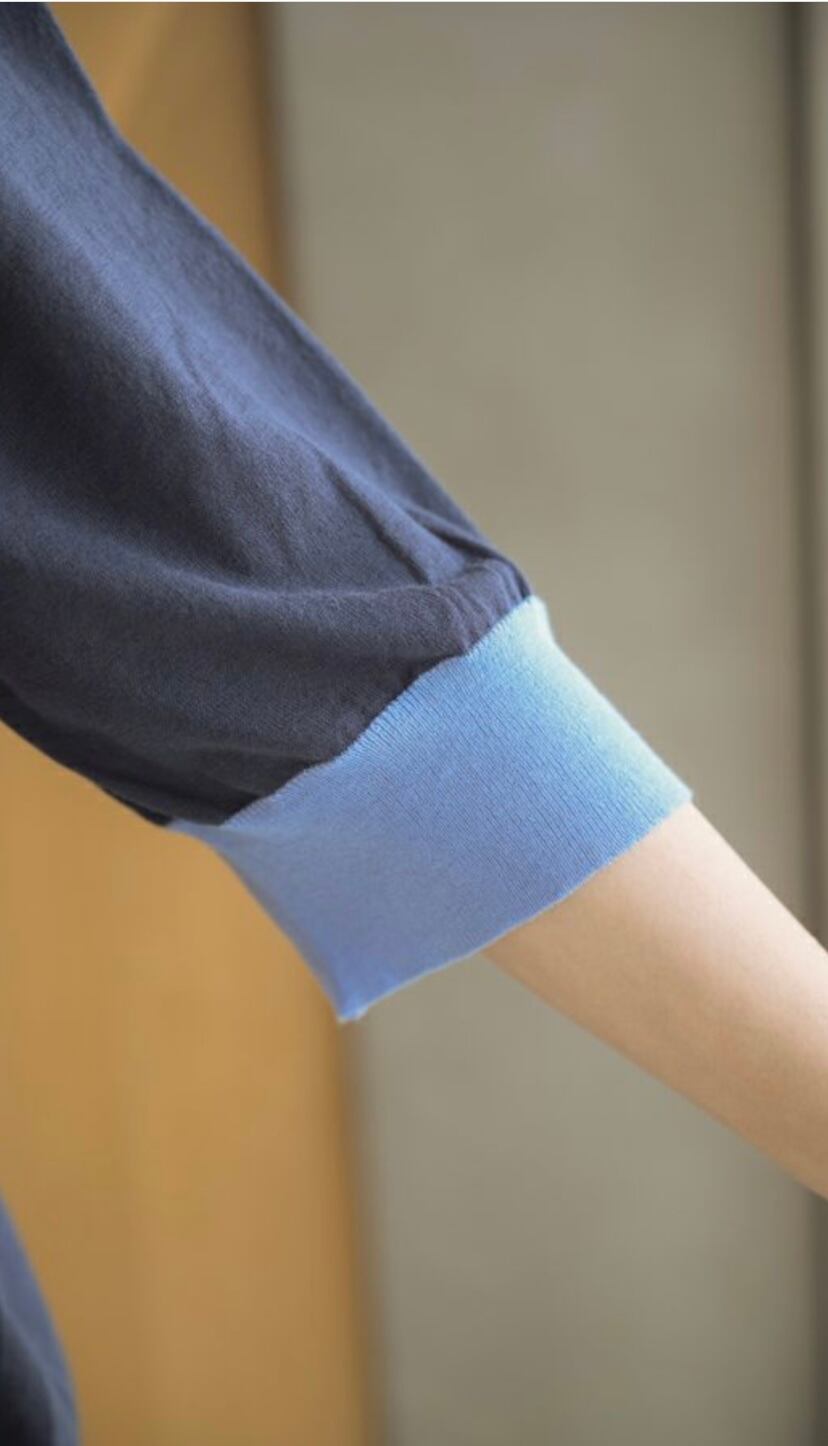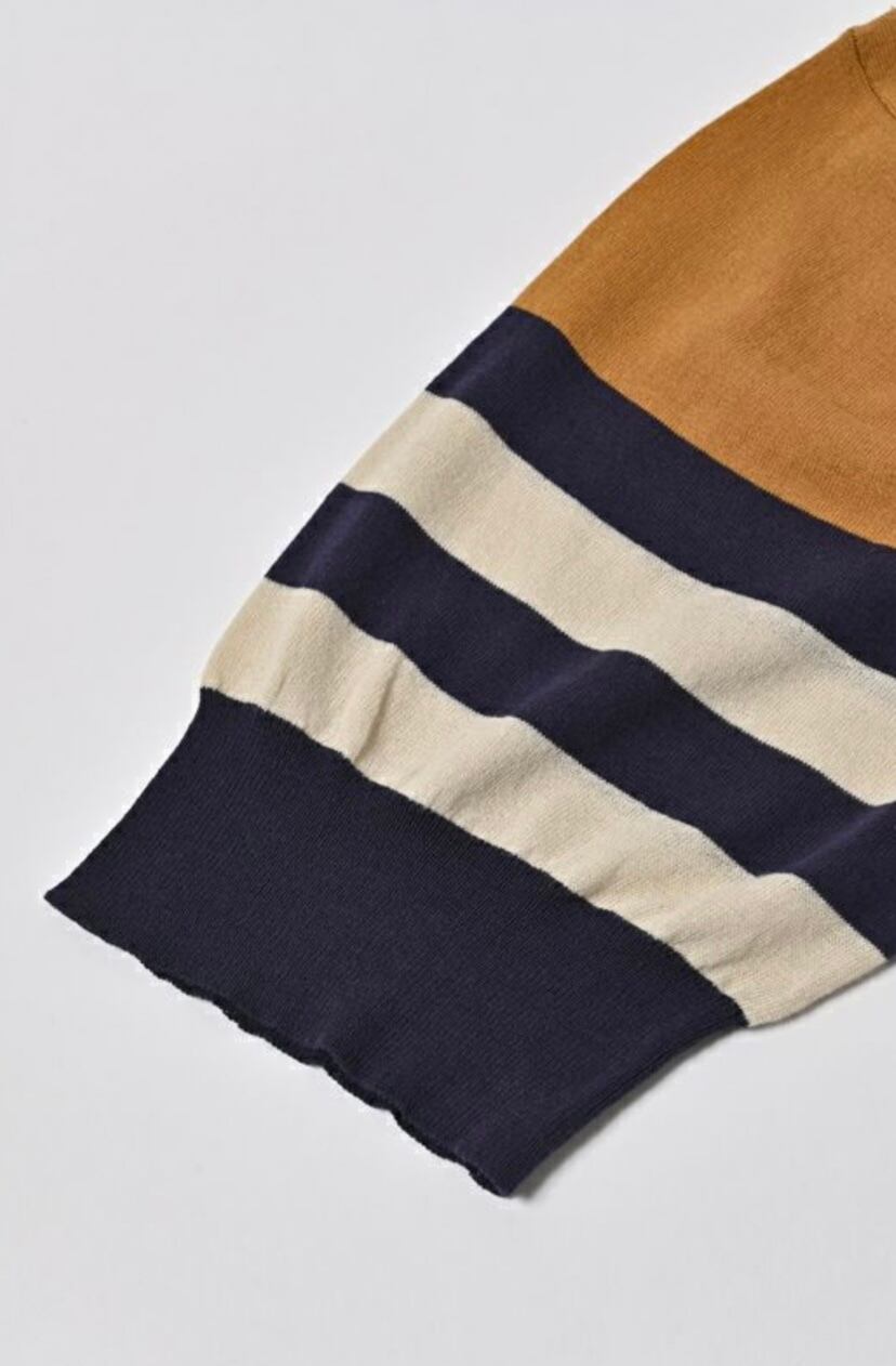 前身頃の中央は、あえて表側に編み代を出して粗野でラフ感を出しました。
