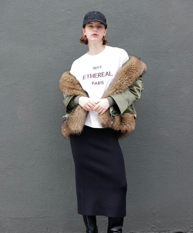 シルエットはベーシックで前身頃にロゴをあしらいました。