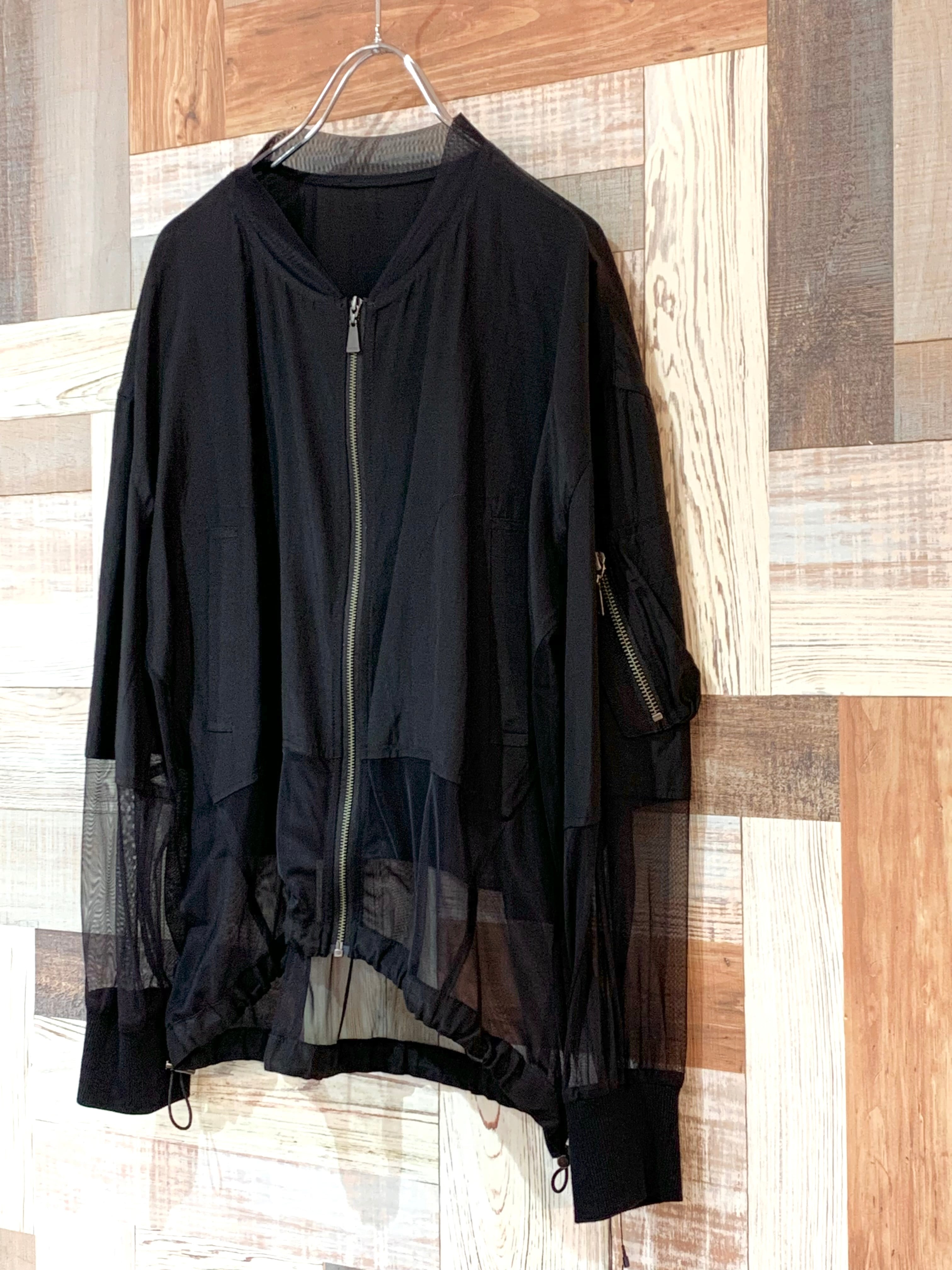 シアー切替 MA1風ブルゾン(ブラック)