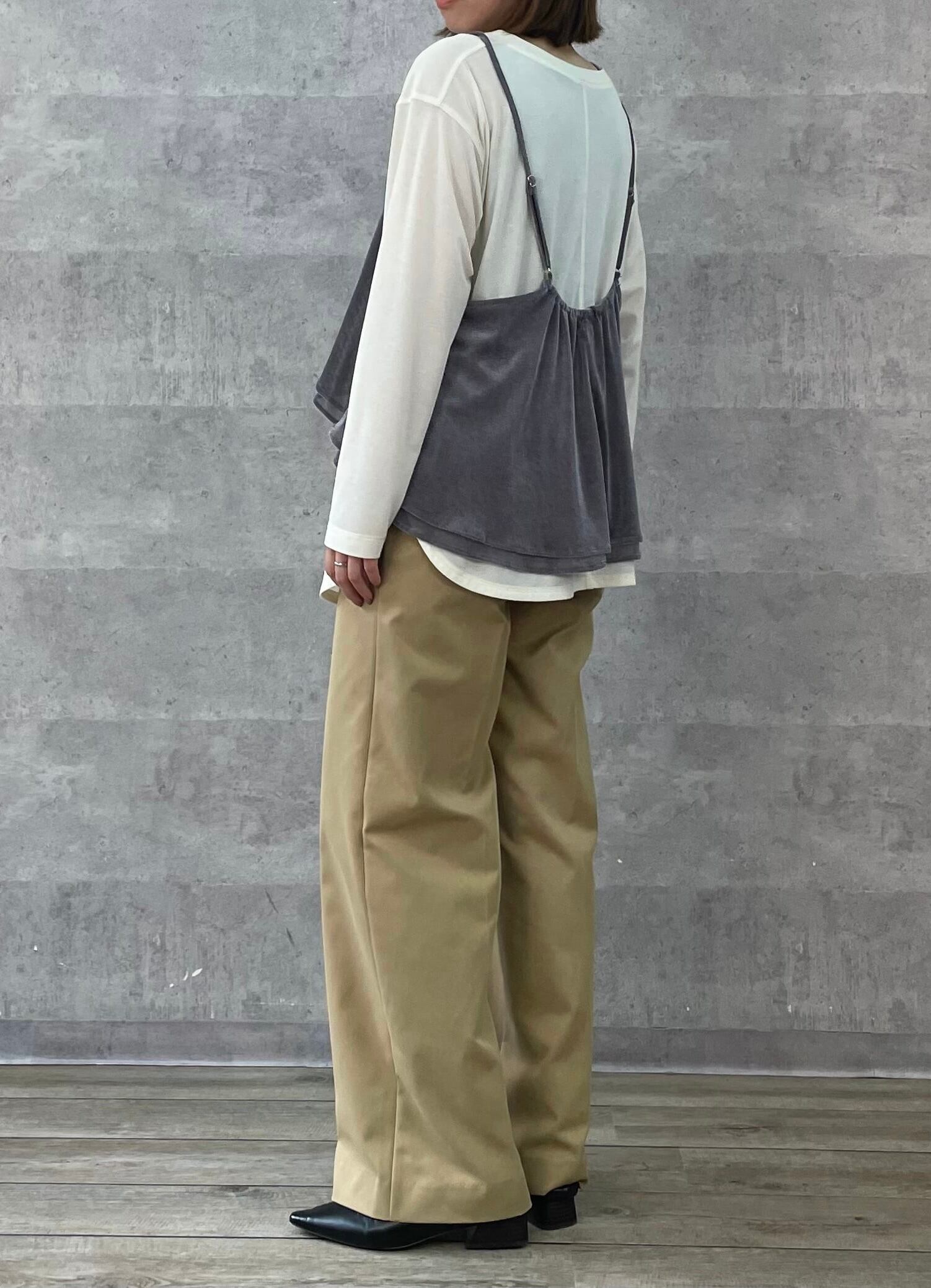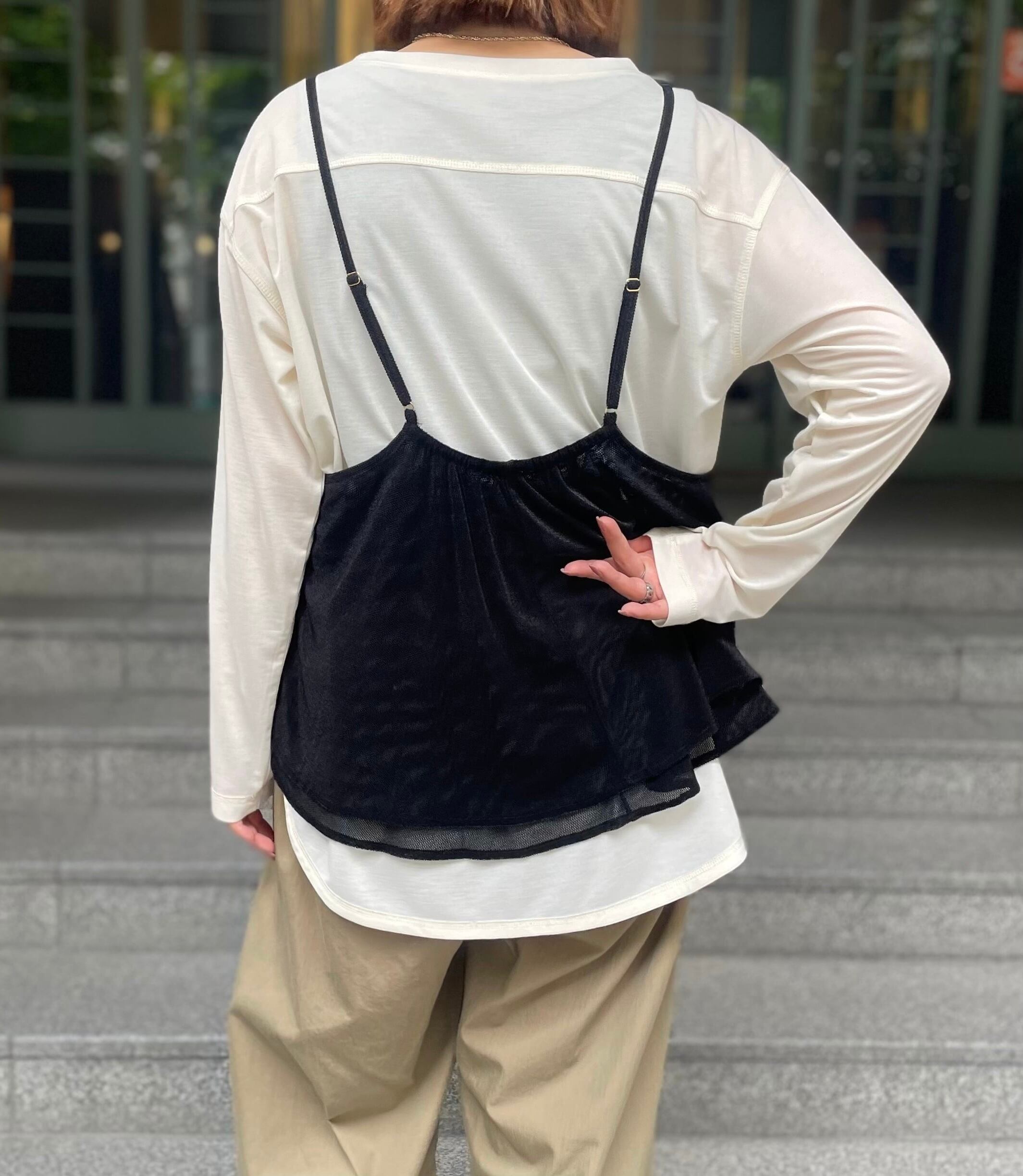 ベロア生地が大人っぽく、秋の香りをプラスし、メッシュで軽さをプラス。