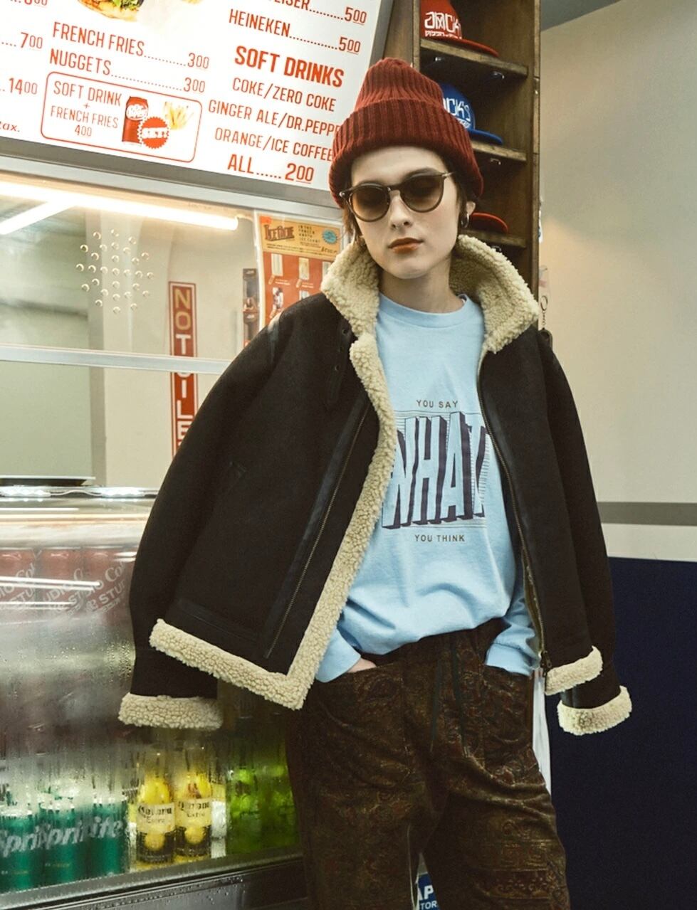 プリントロゴはクラッキングの手法で、自然なヒビ割れがヴィンテージ感のある仕上がりです。
