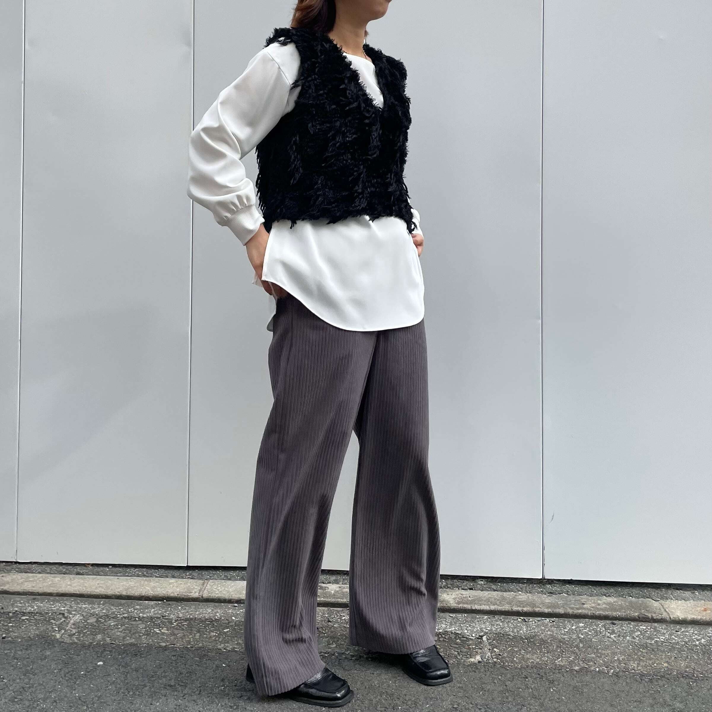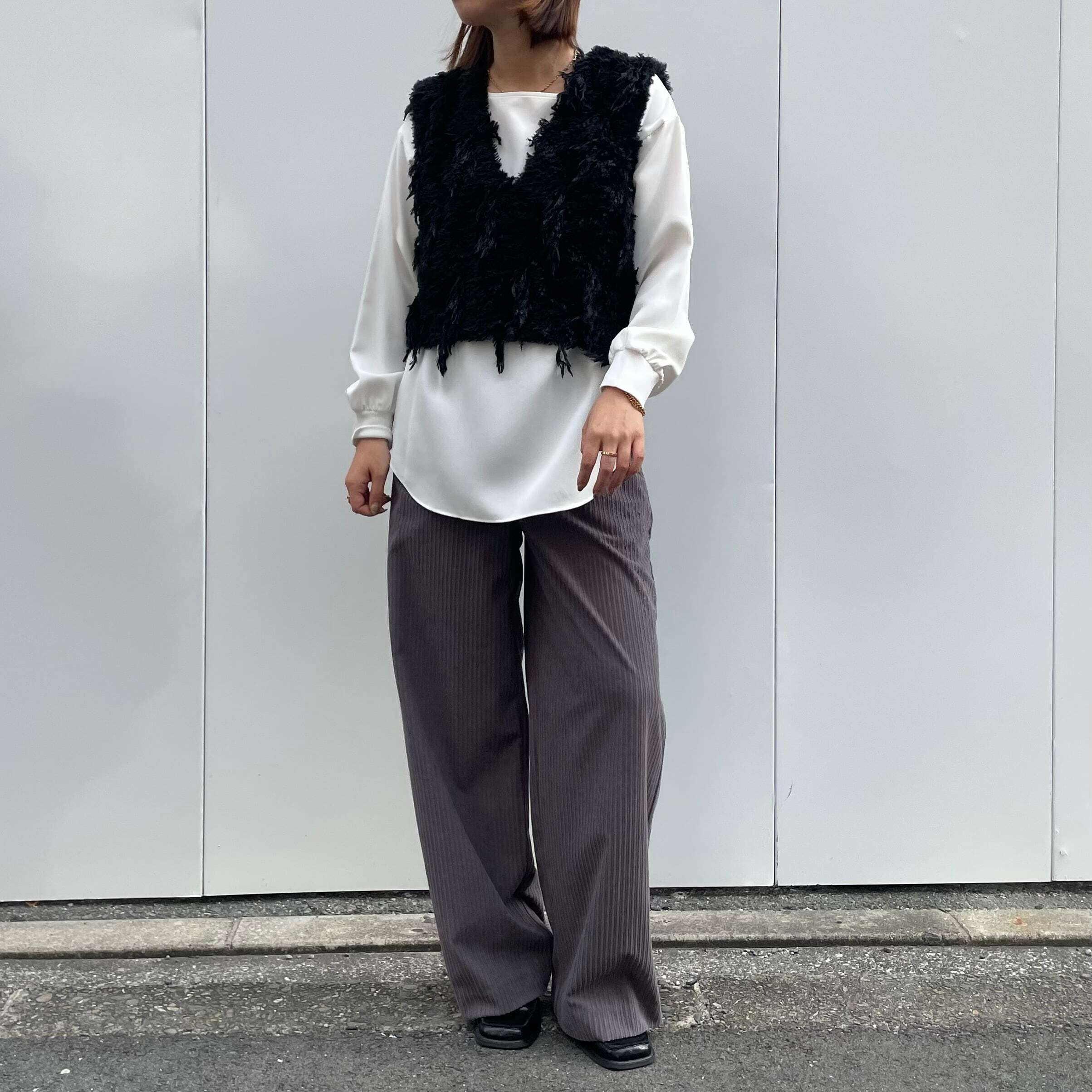 ロンTやブラウスなど、様々なトップスとのレイヤードをお楽しみ下さい