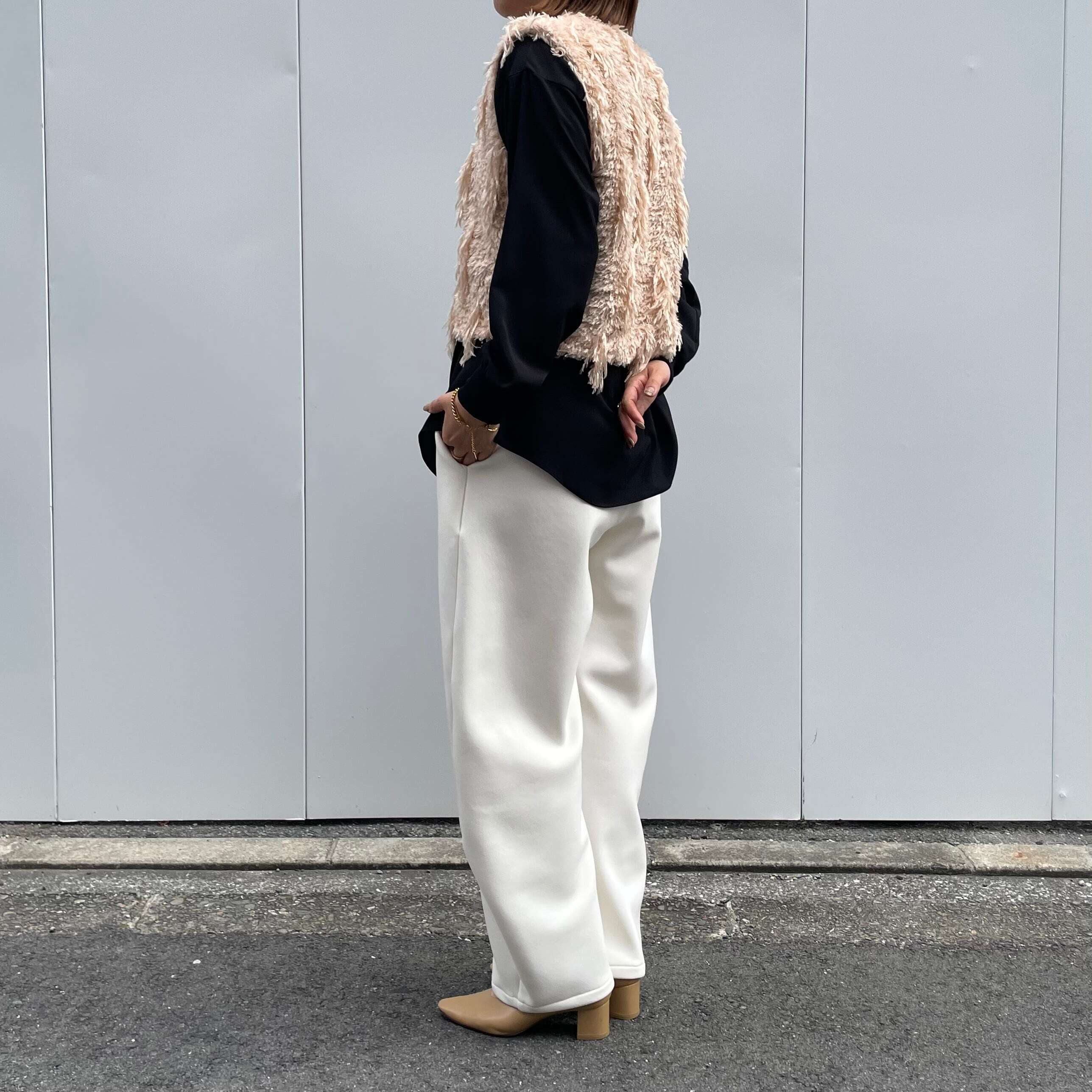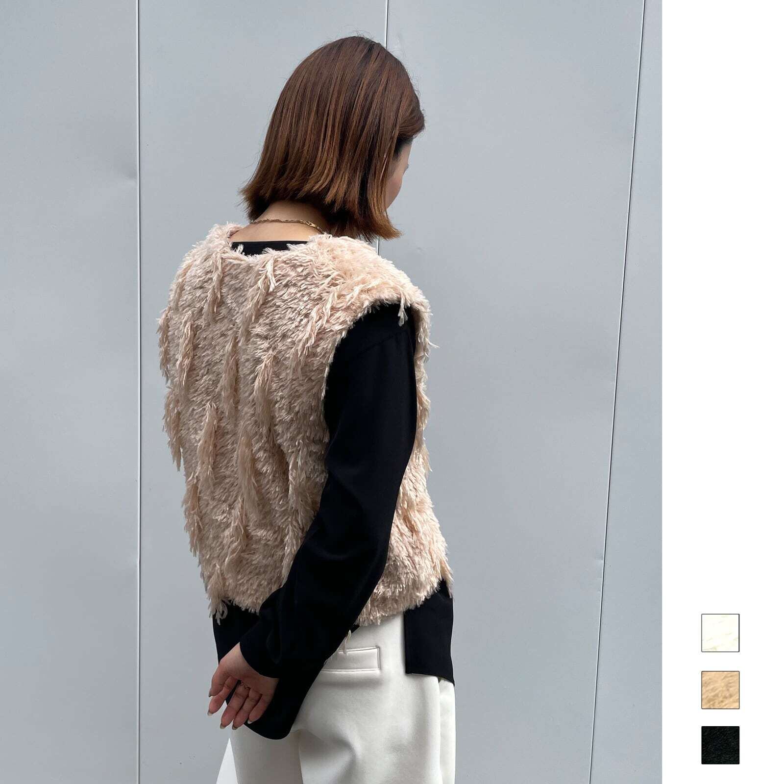 ふんわりしたファーがリッチで女性らしい印象へ