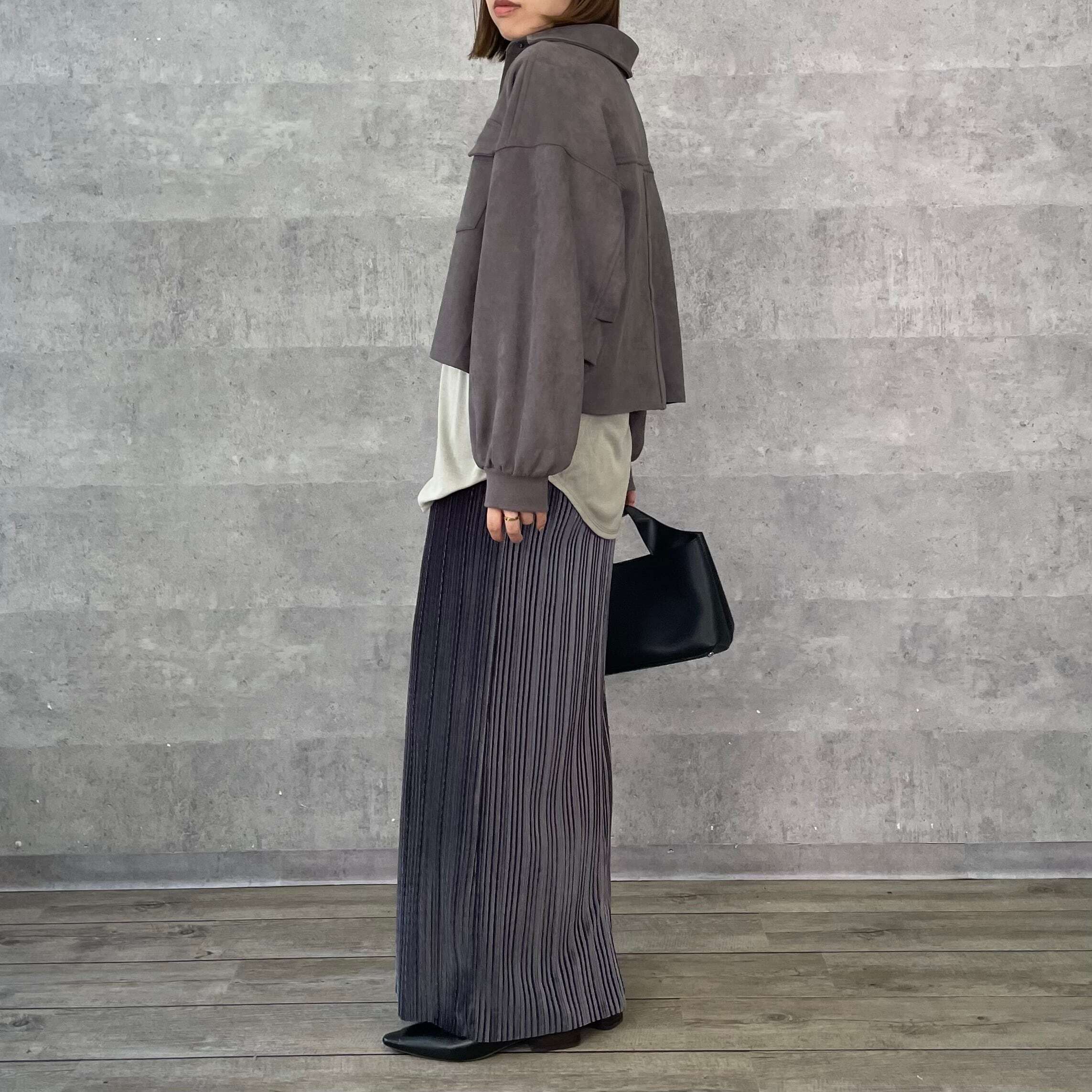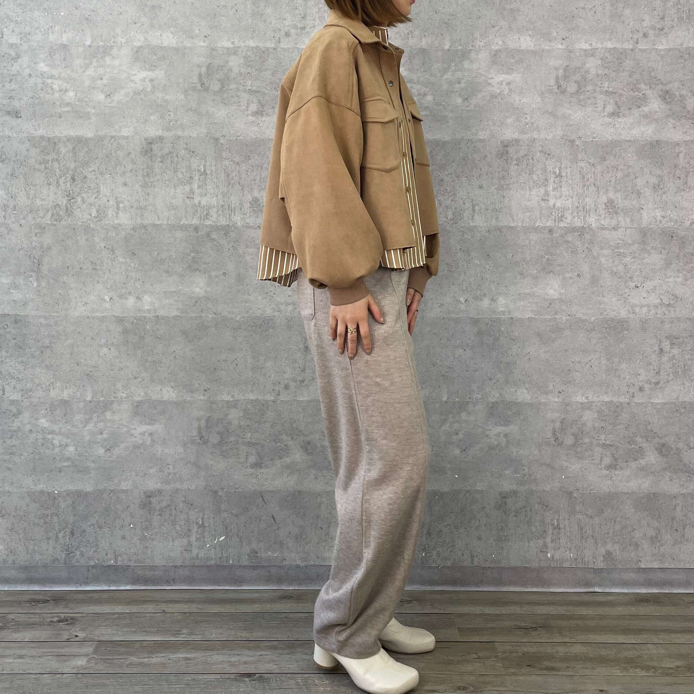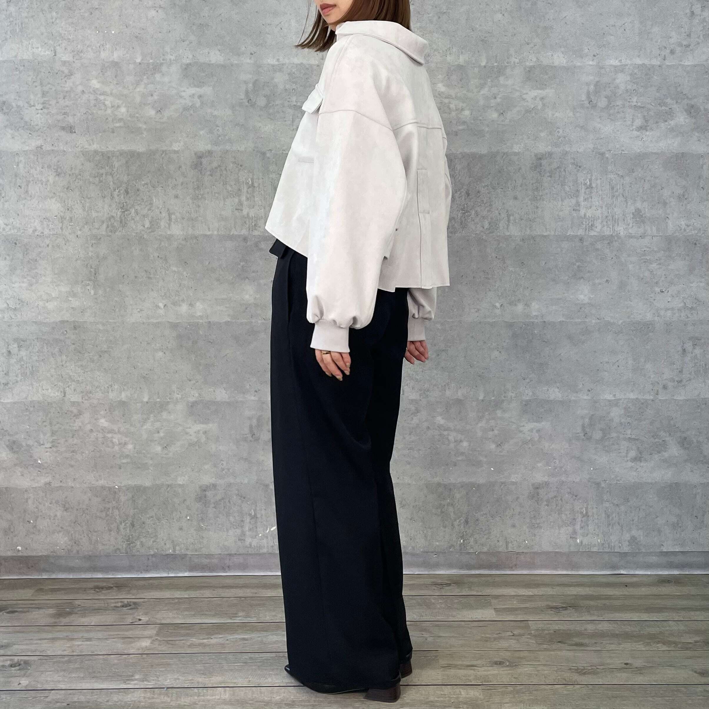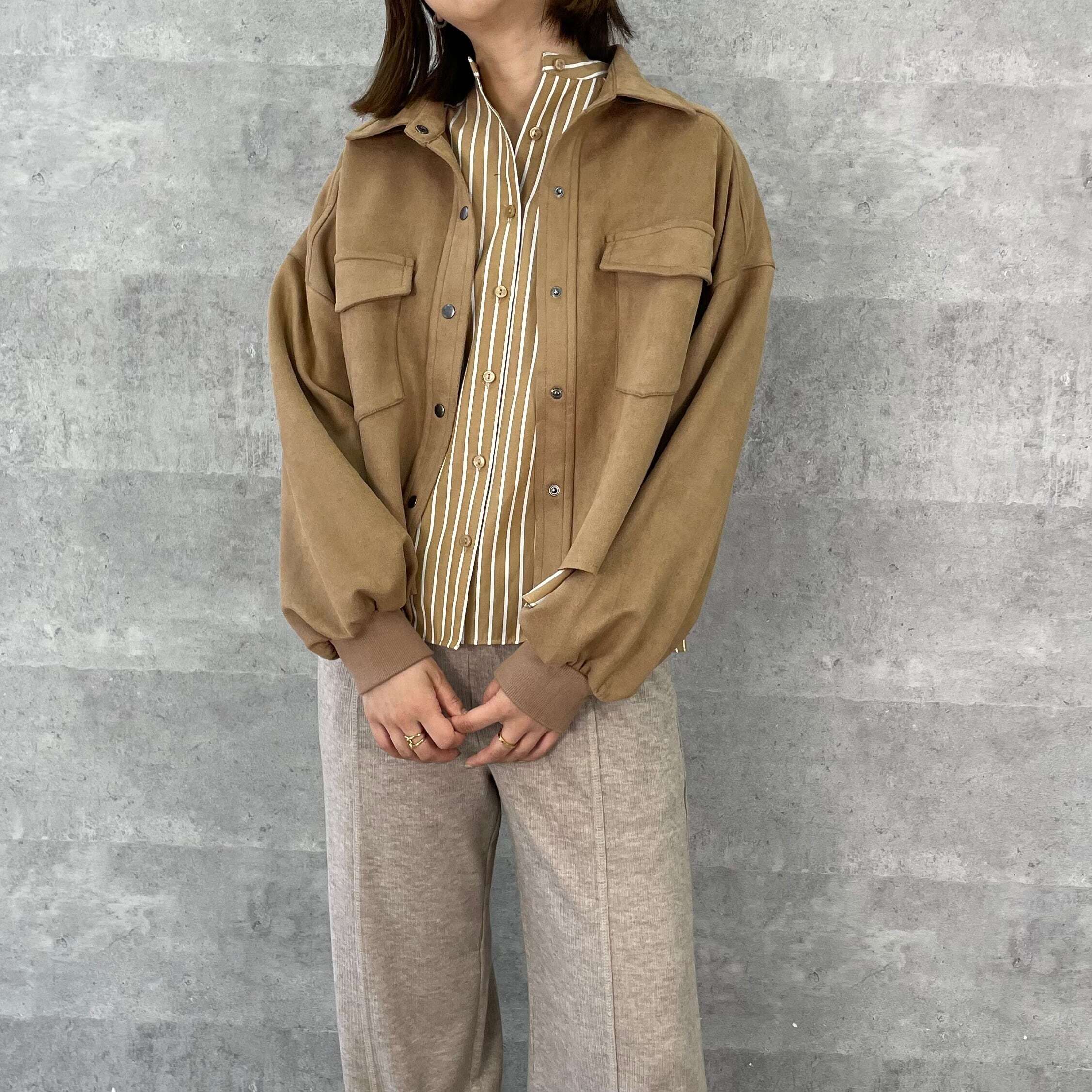滑らかで手触りが心地良い、高見えするエコスエードを使用したジャケット