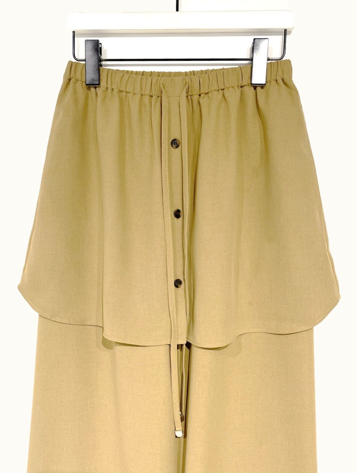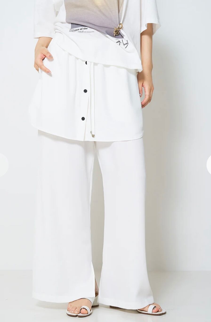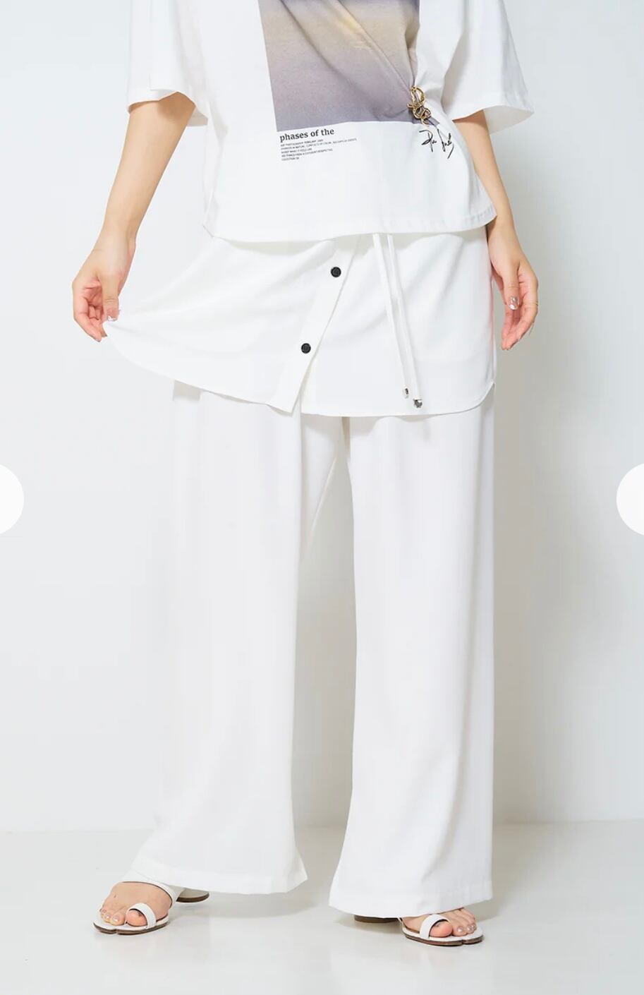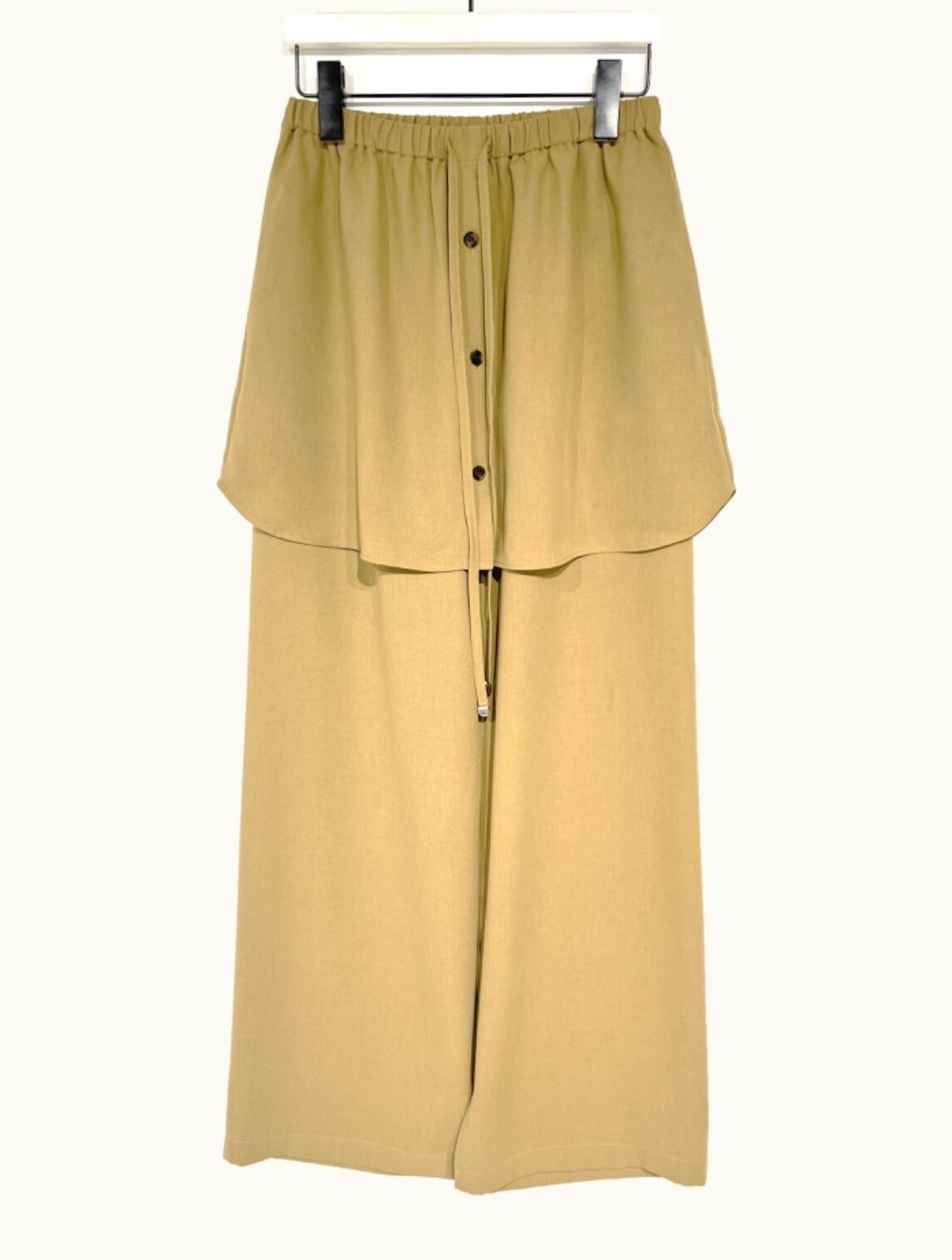 さらりと落ち感のある生地を使用した、スカートをドッキングしたデザインPTです。
