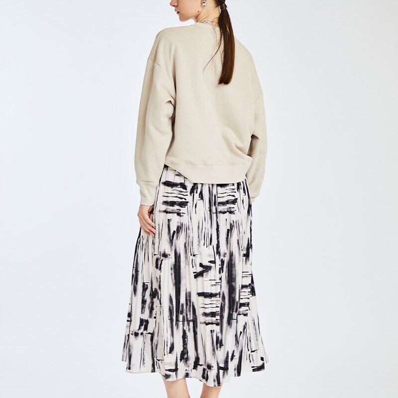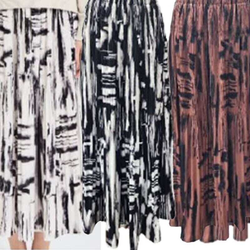 ぼかし感のあるアート柄が他人とかぶりにくいコーディネートができ、目を惹くスカートに仕上がっています