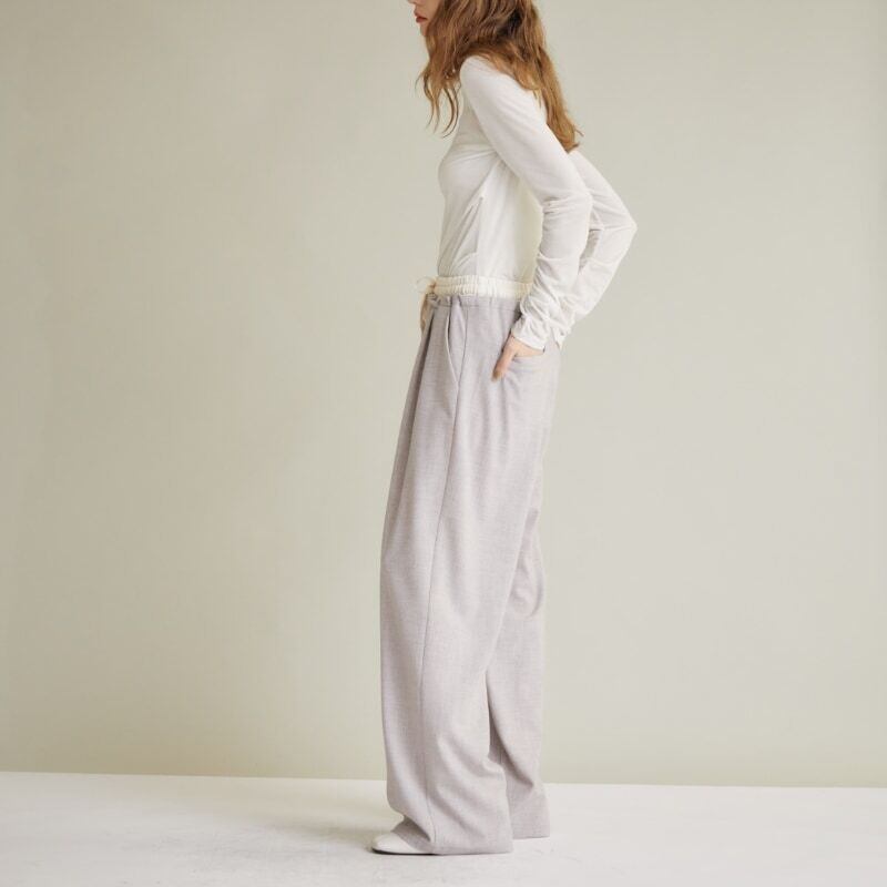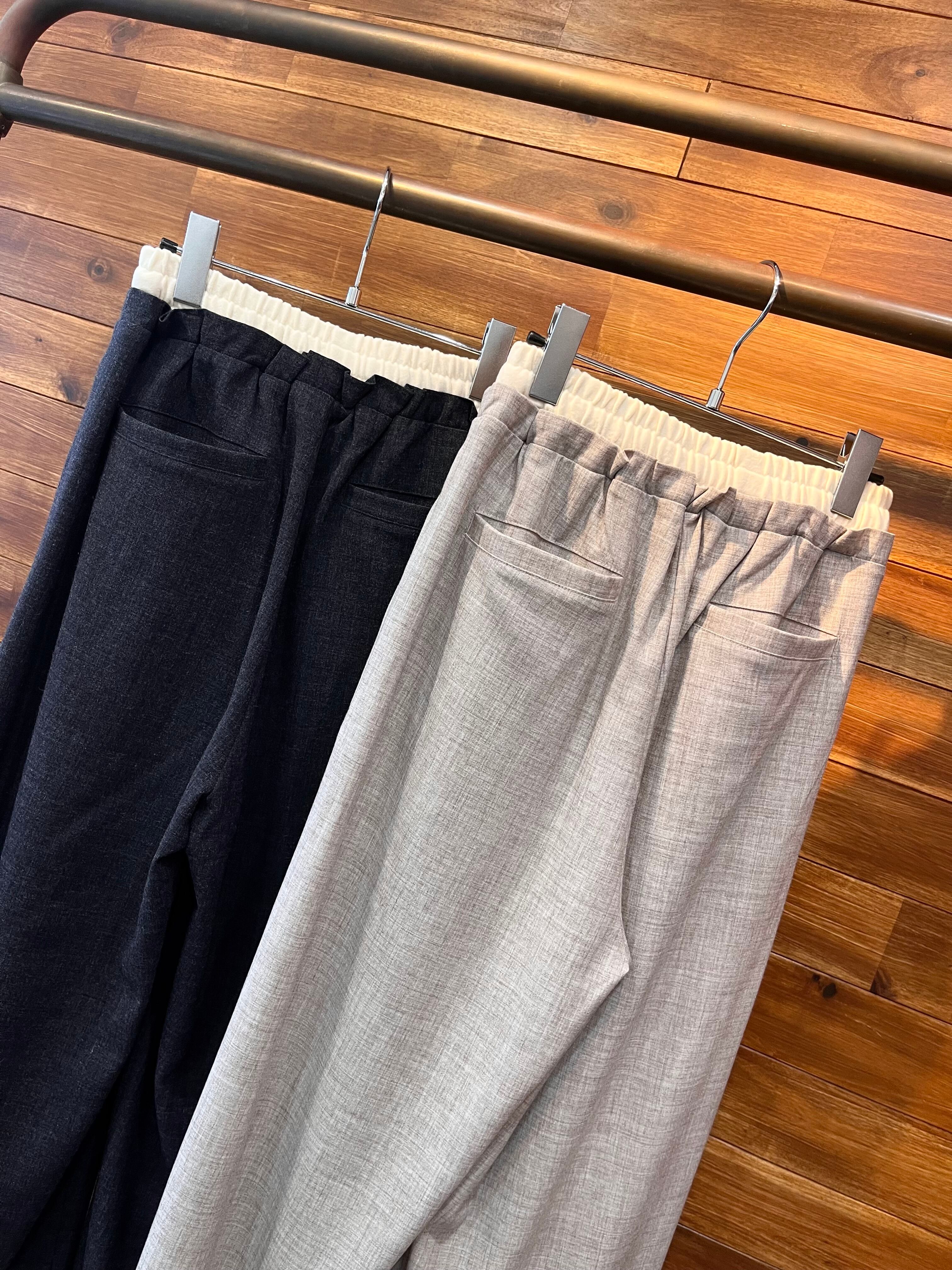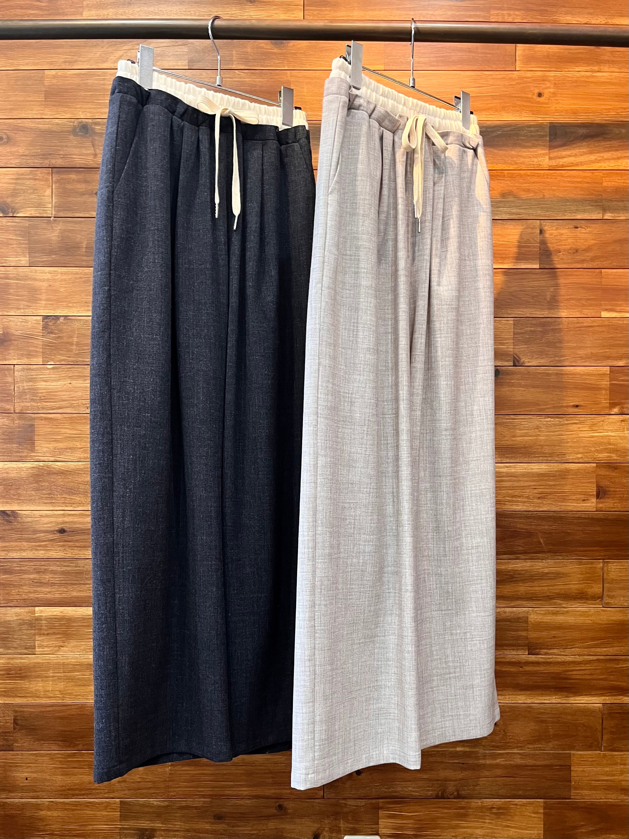 着脱も着心地もラクなダブルウエストドロストワイドパンツ