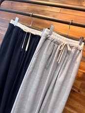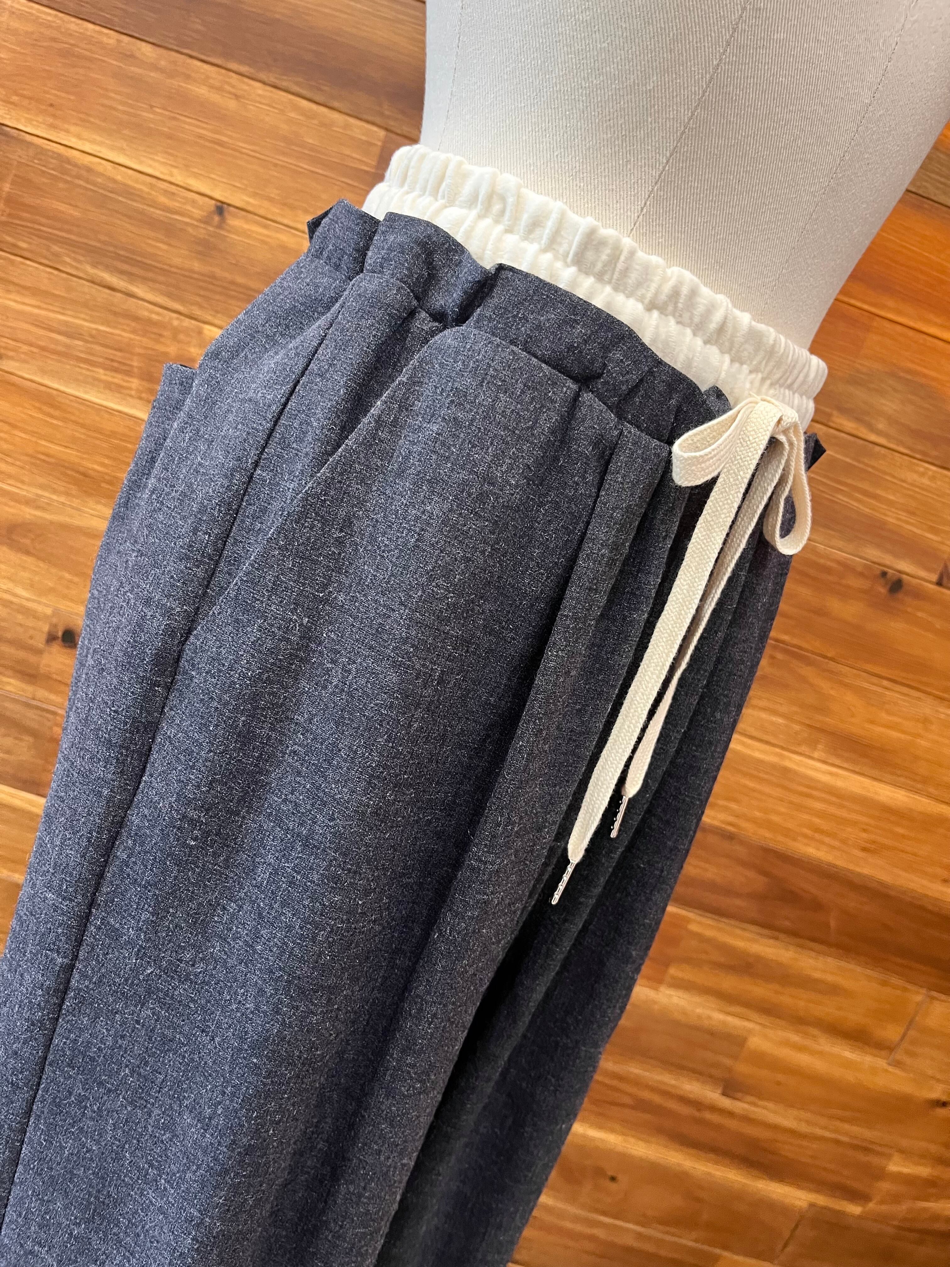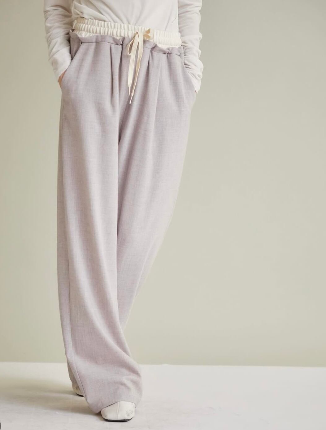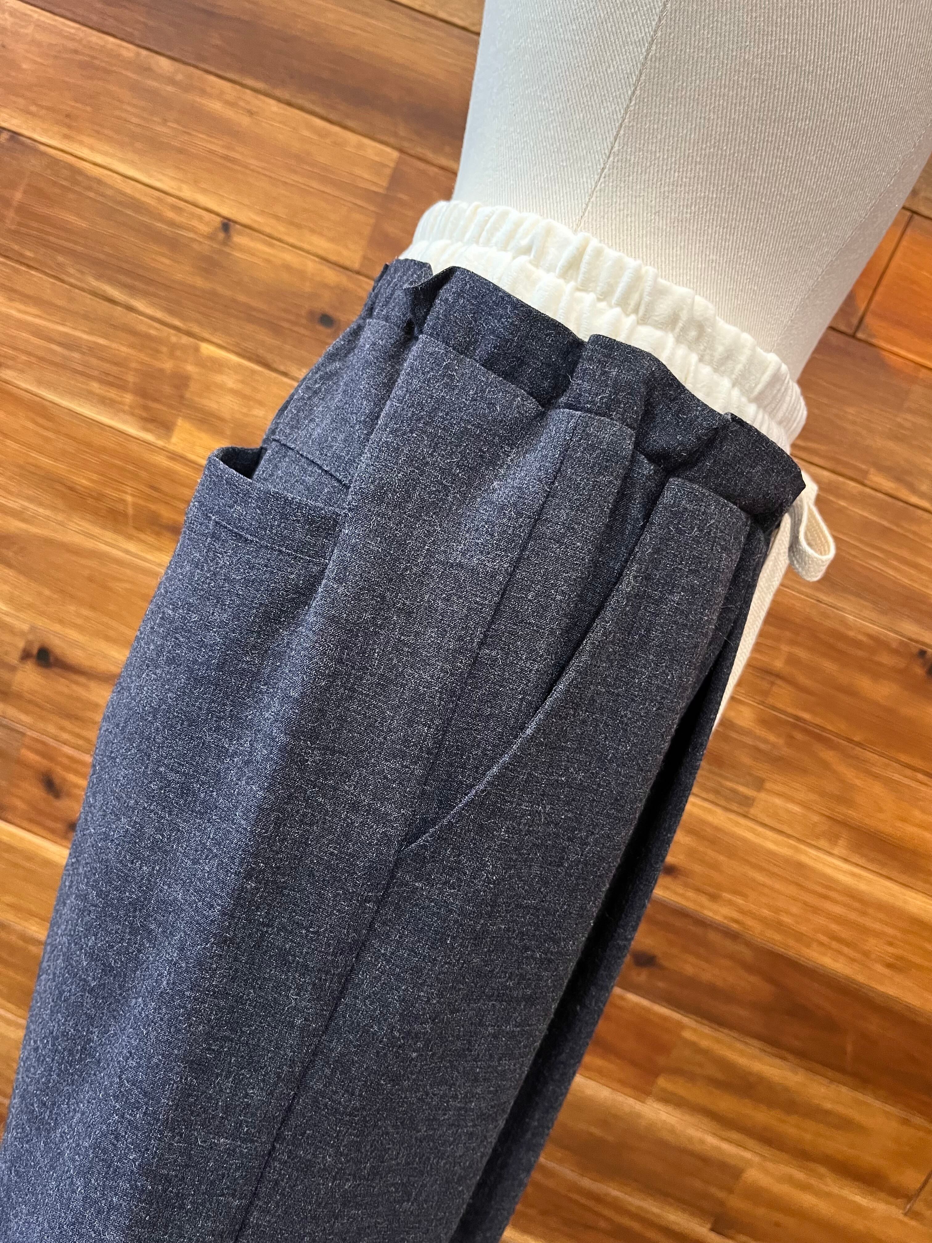 着脱も着心地もラクなダブルウエストドロストワイドパンツ