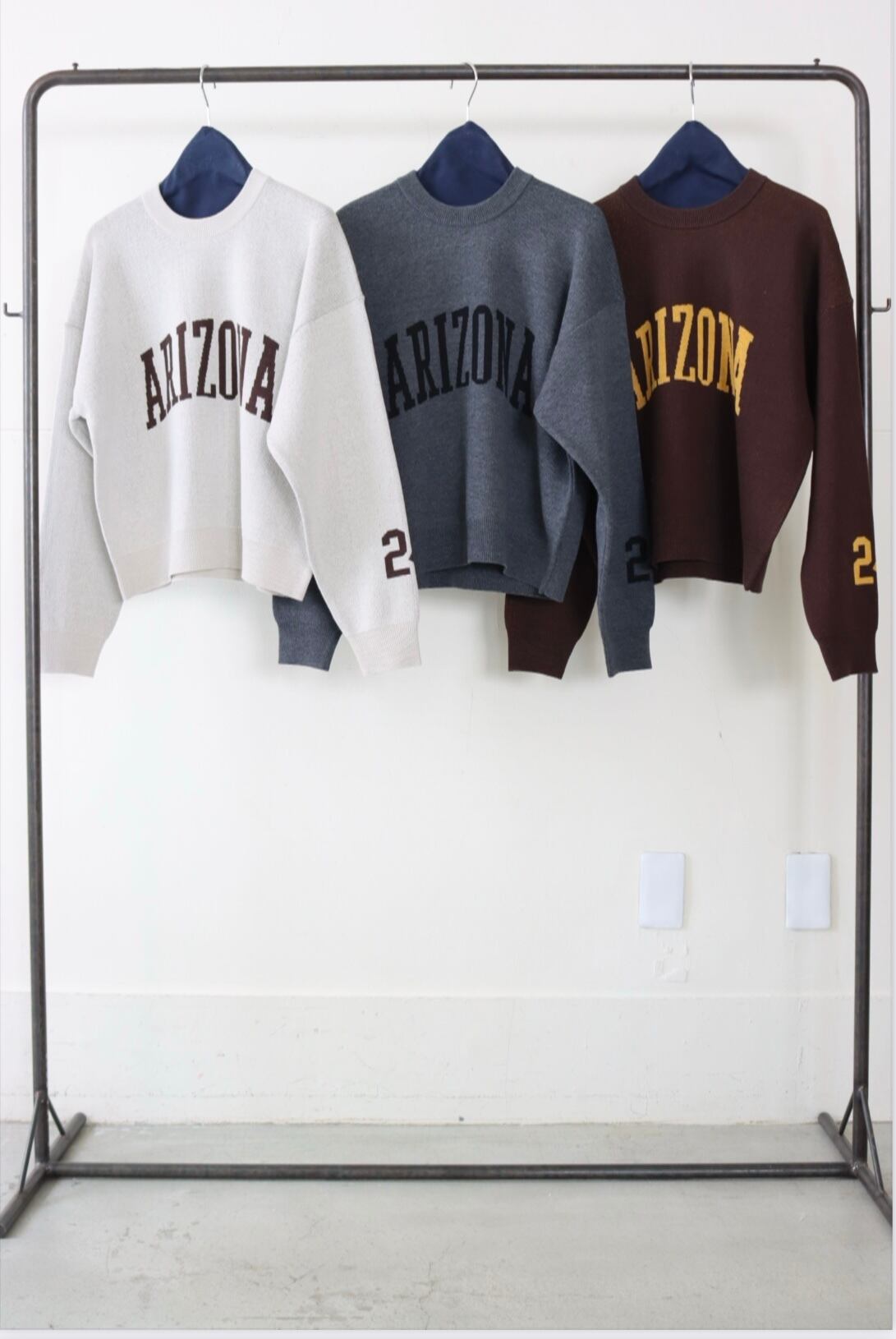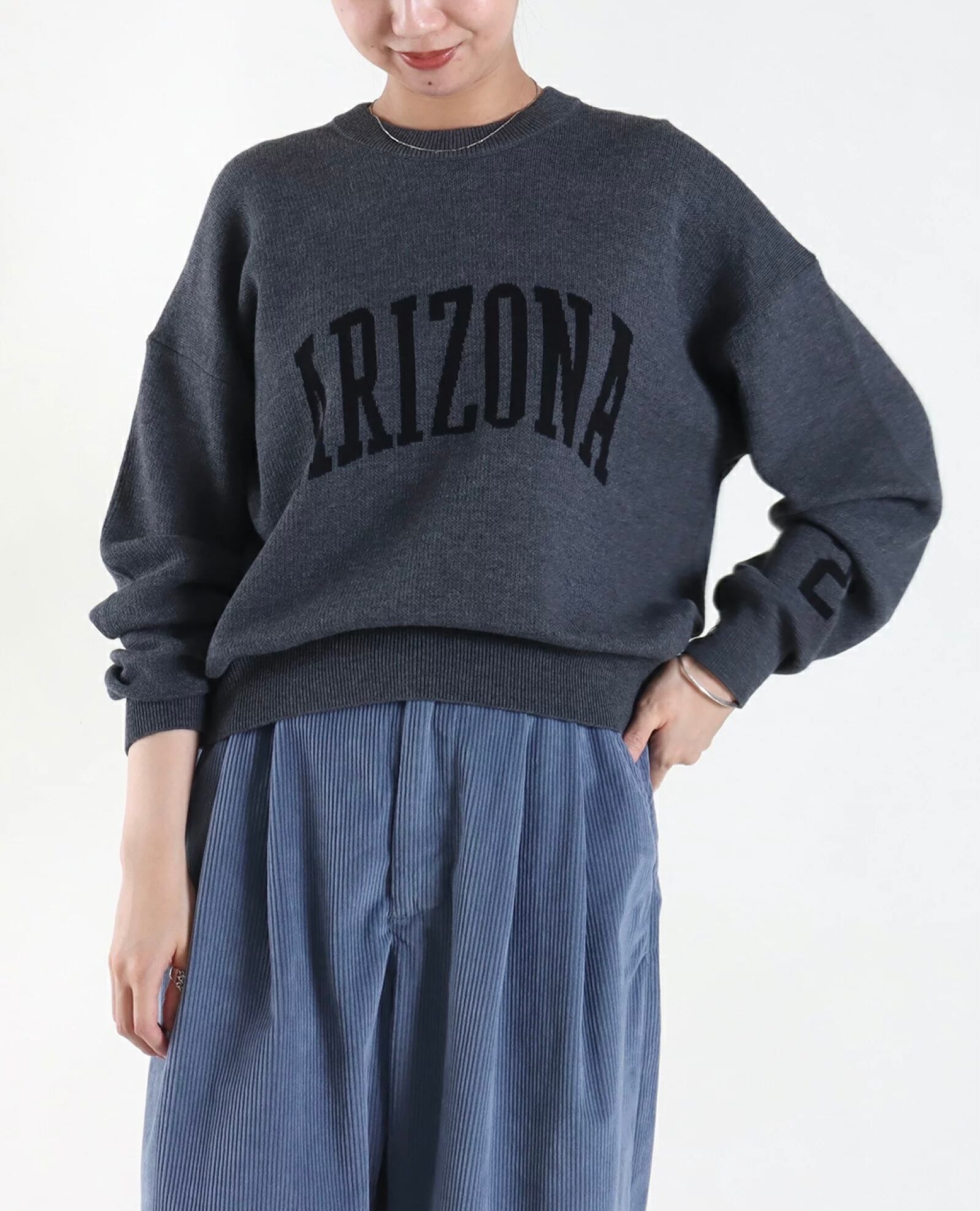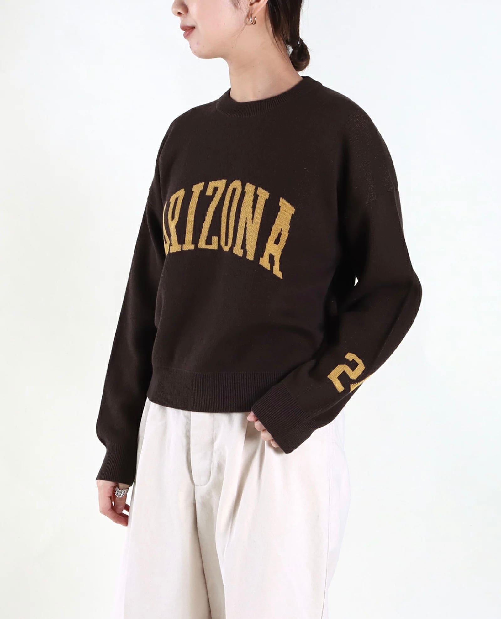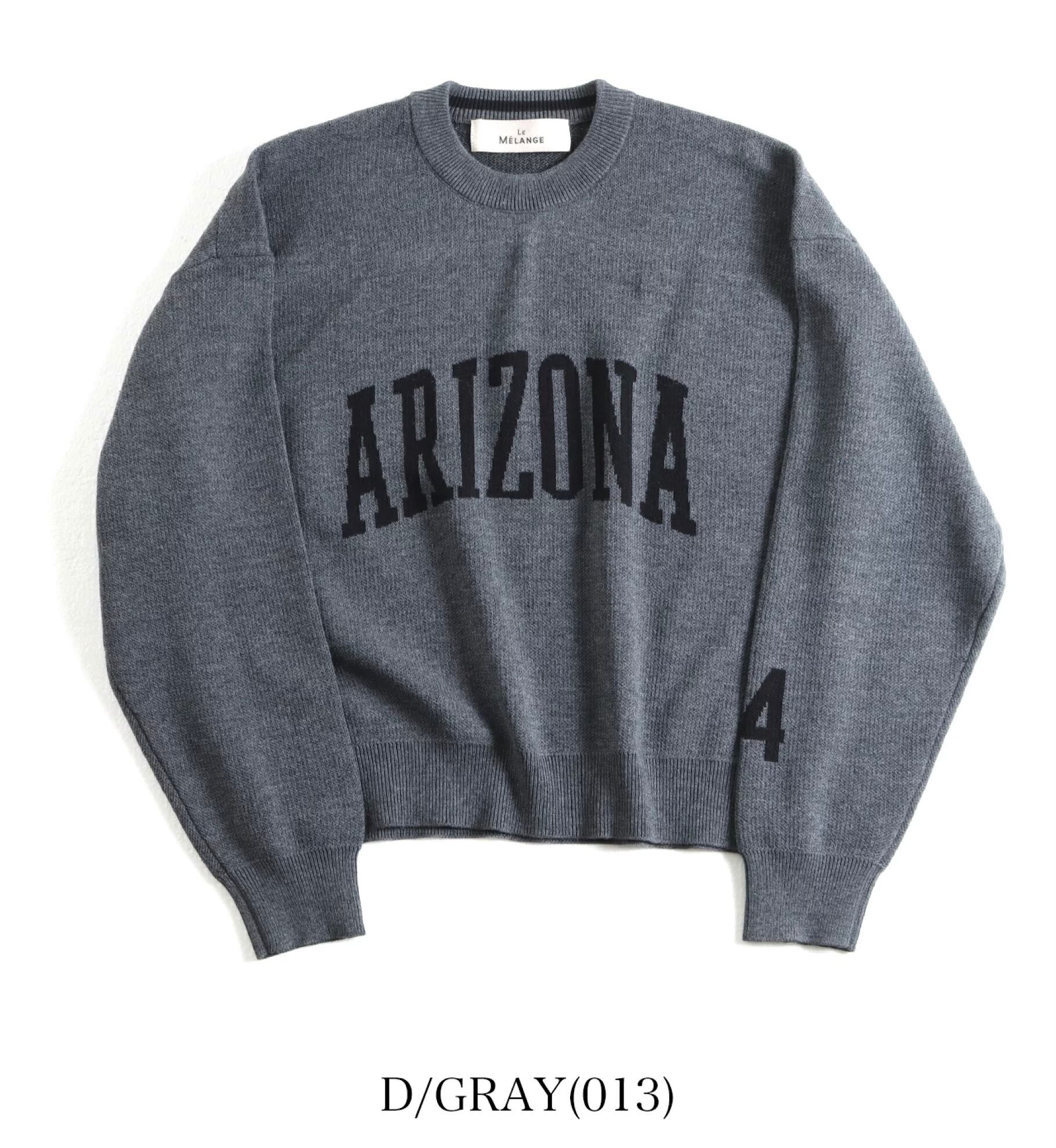 フロントにはカレッジ風のラウンドしたロゴ、左袖口にはナンバーロゴがあります