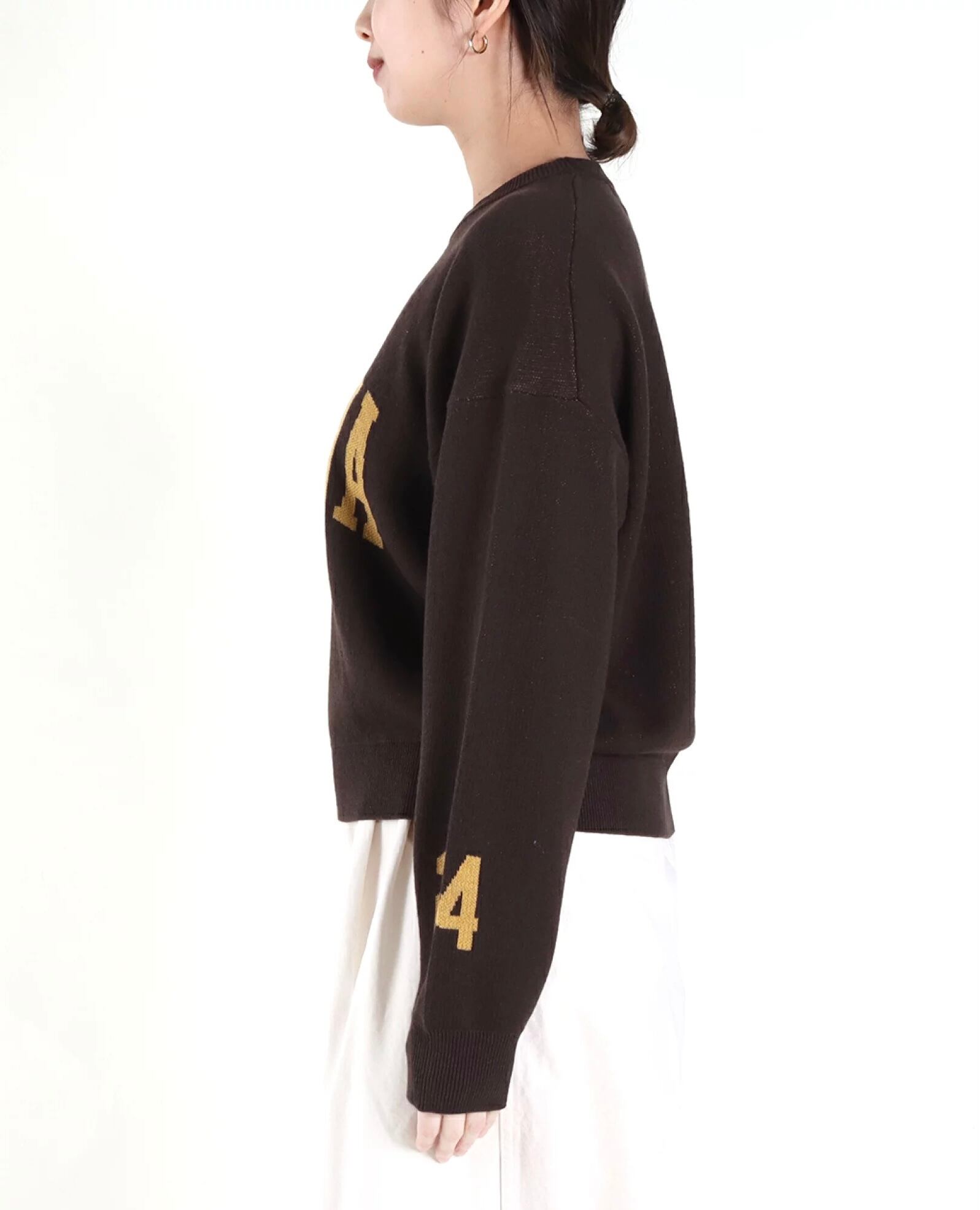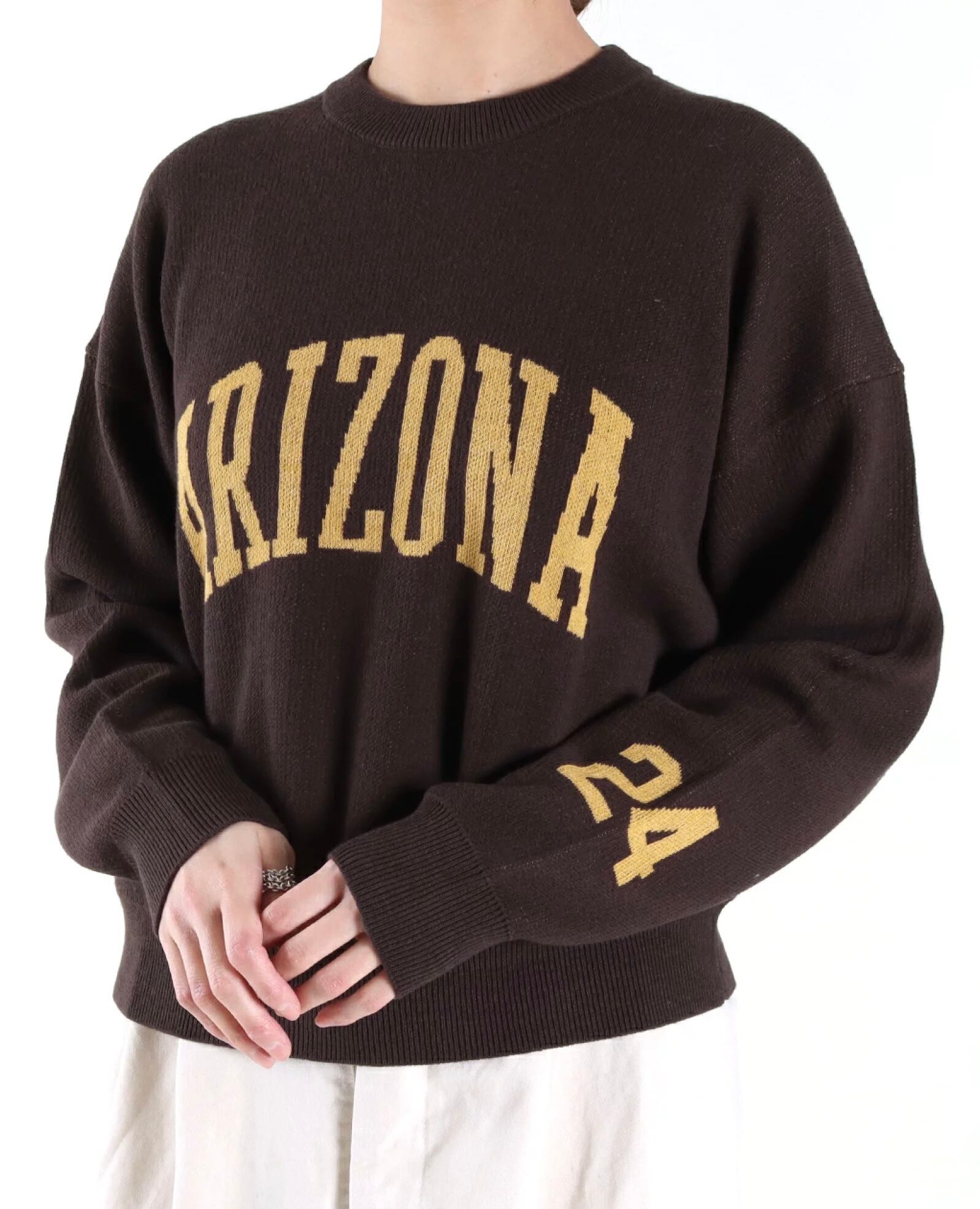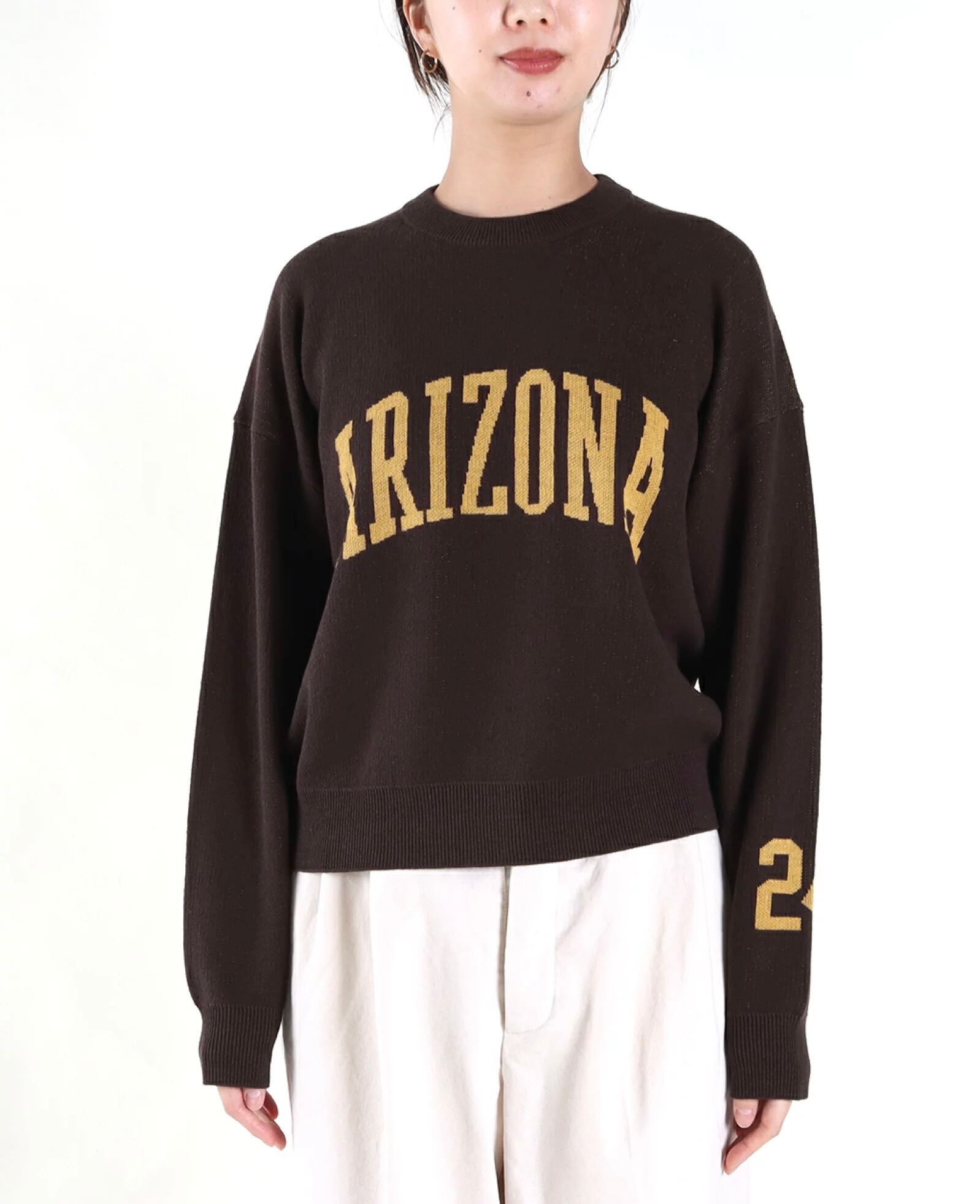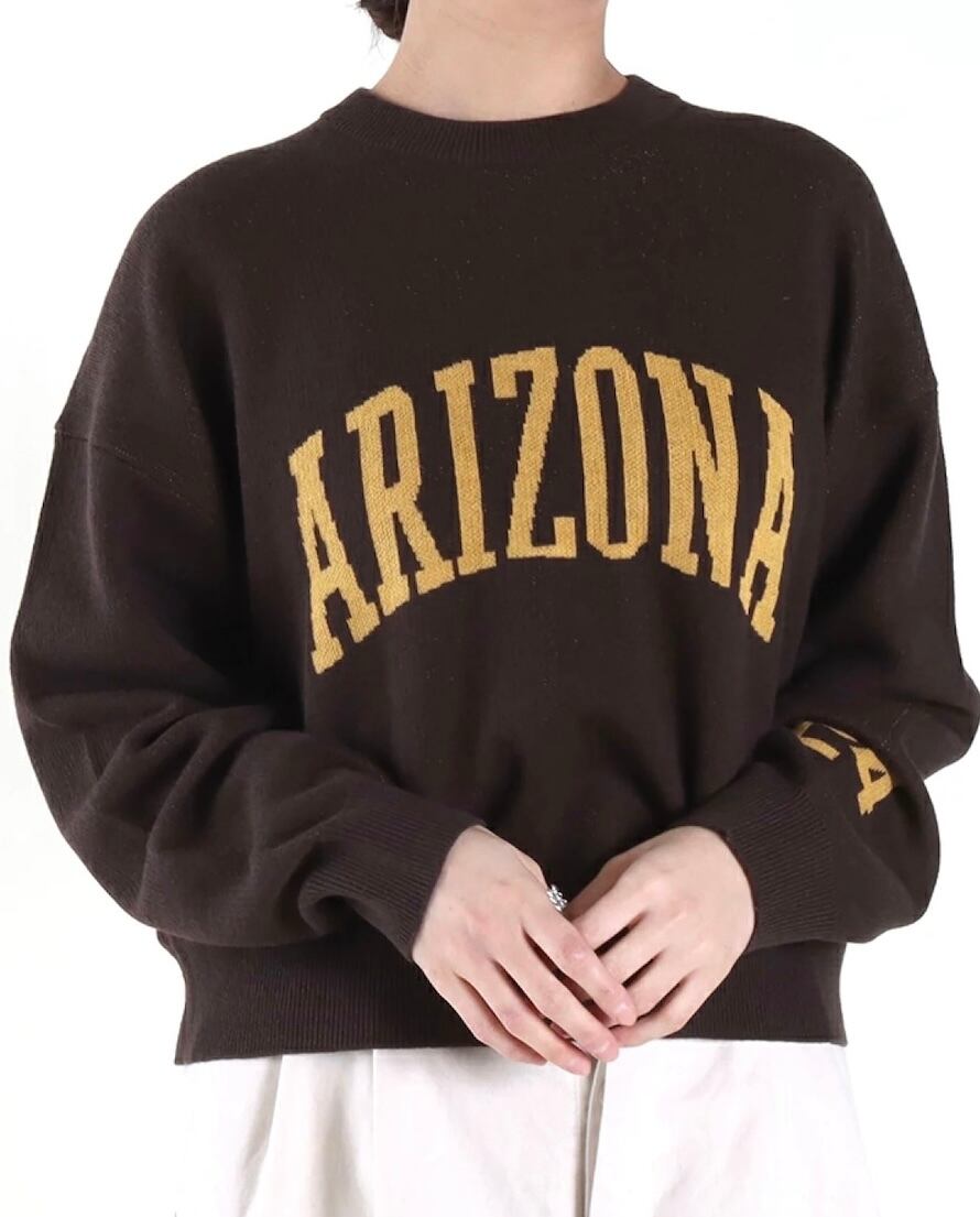 フロントにはカレッジ風のラウンドしたロゴ、左袖口にはナンバーロゴがあります