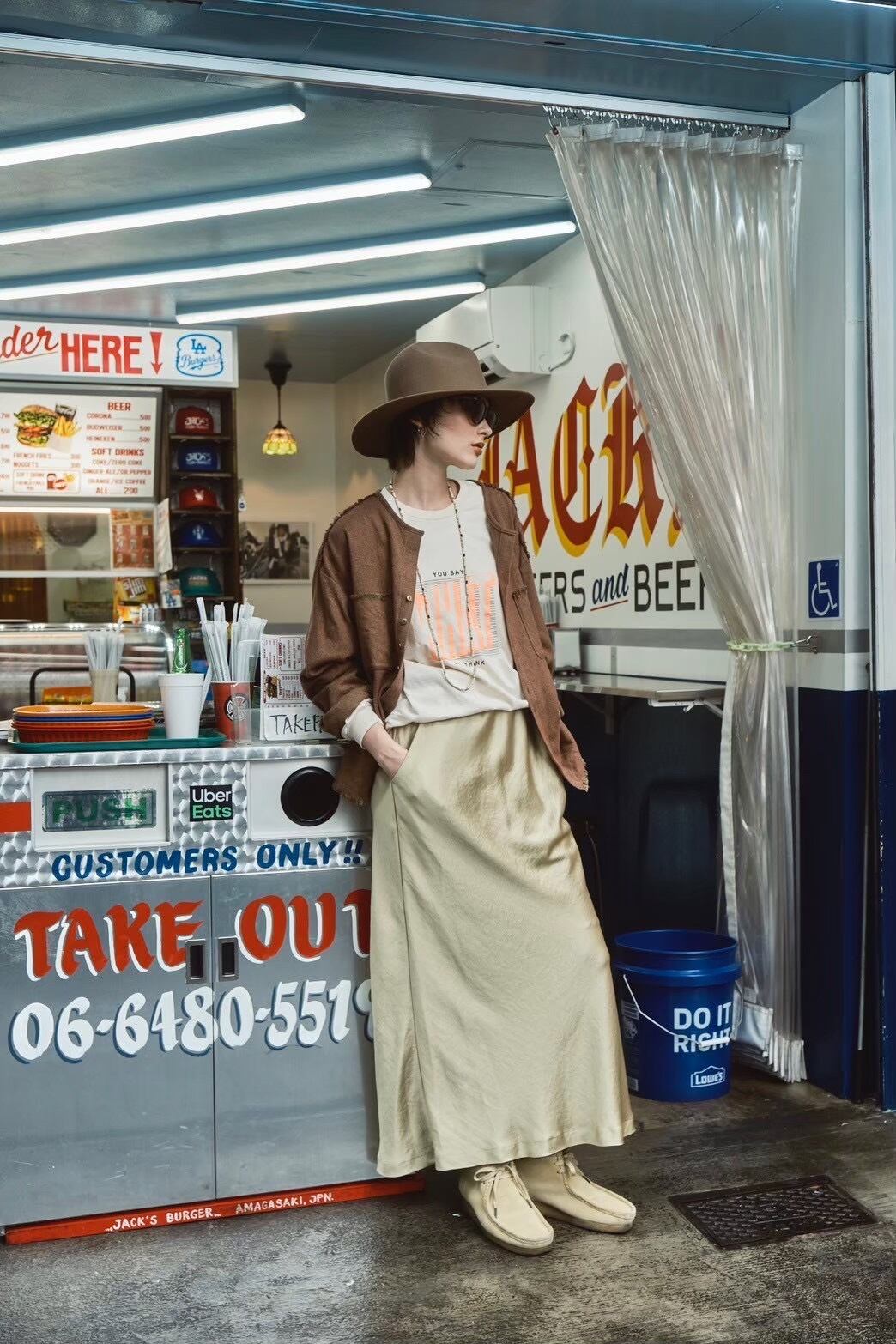 デニムの様なカジュアルアイテムにもサテンスカートのような色気のあるアイテムに合わせるのも◎