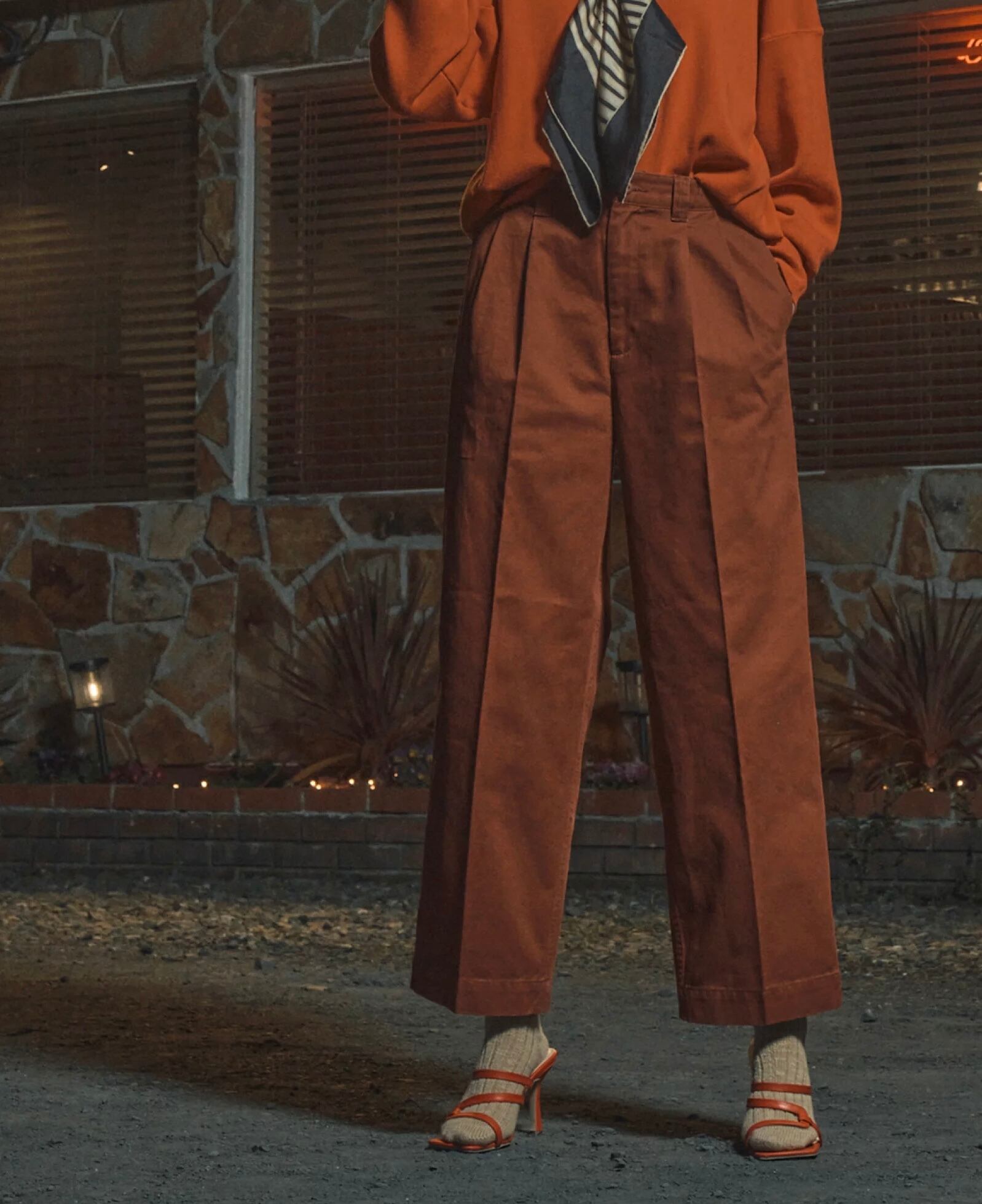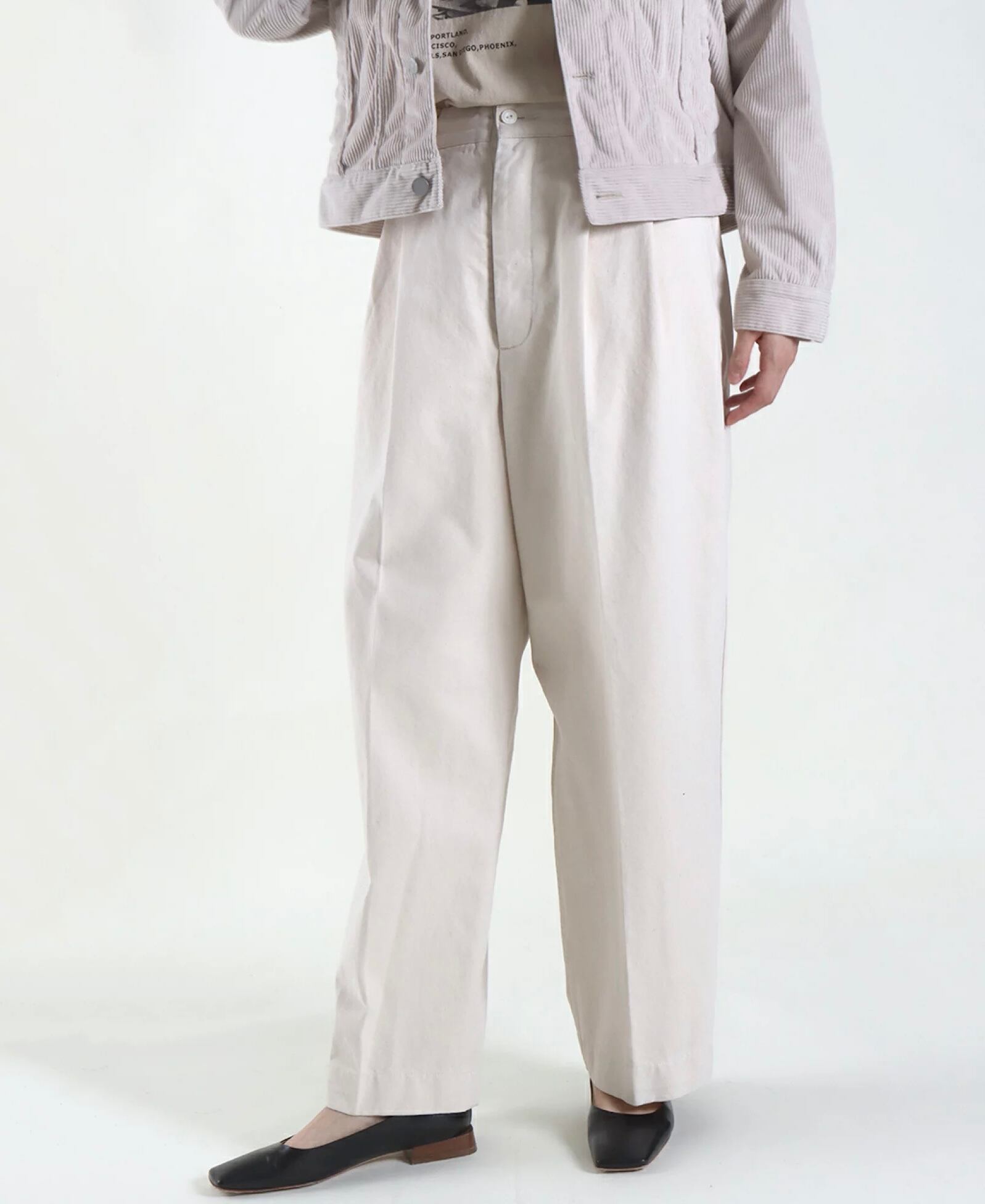 コットンツイルワイドタックパンツ