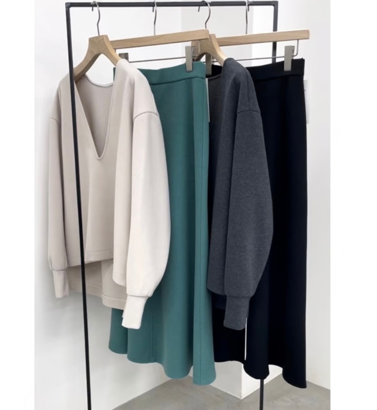 ウールライクなストレッチジャージ素材のスカートです。