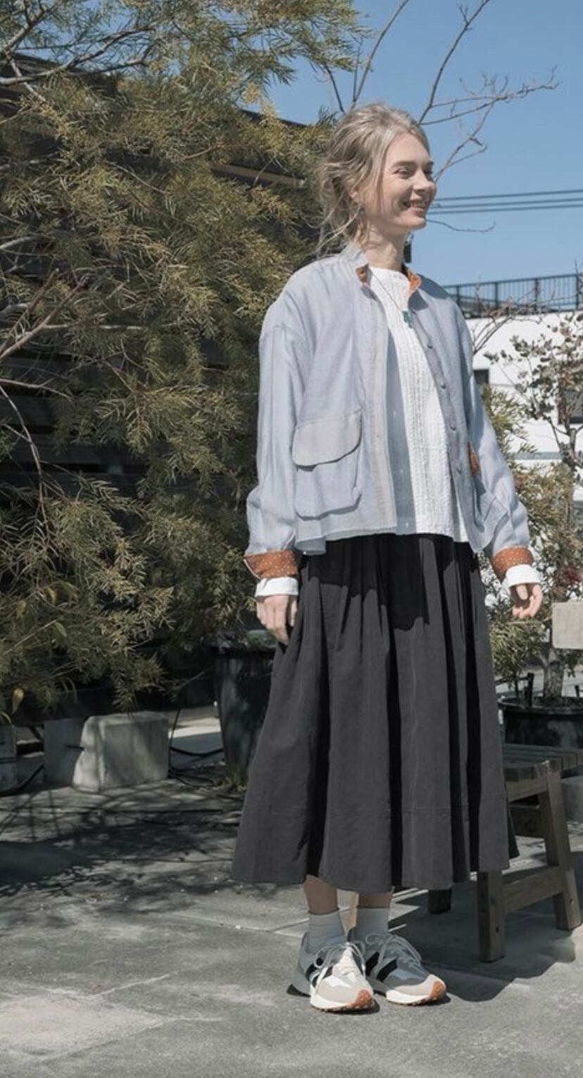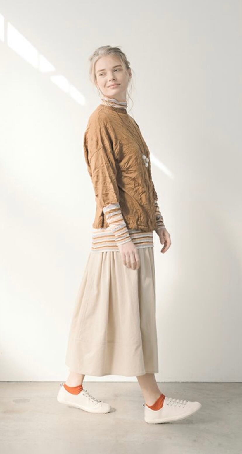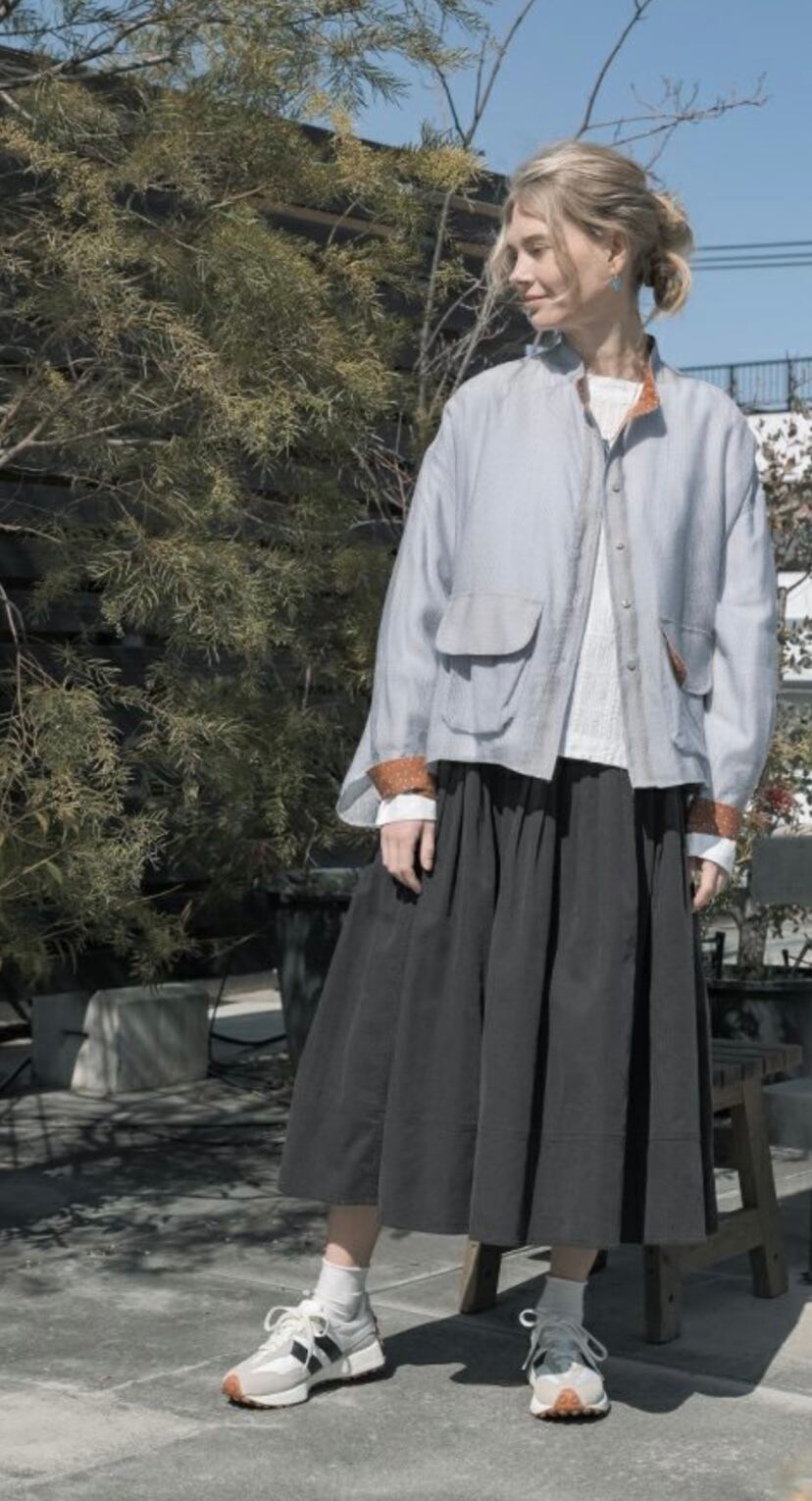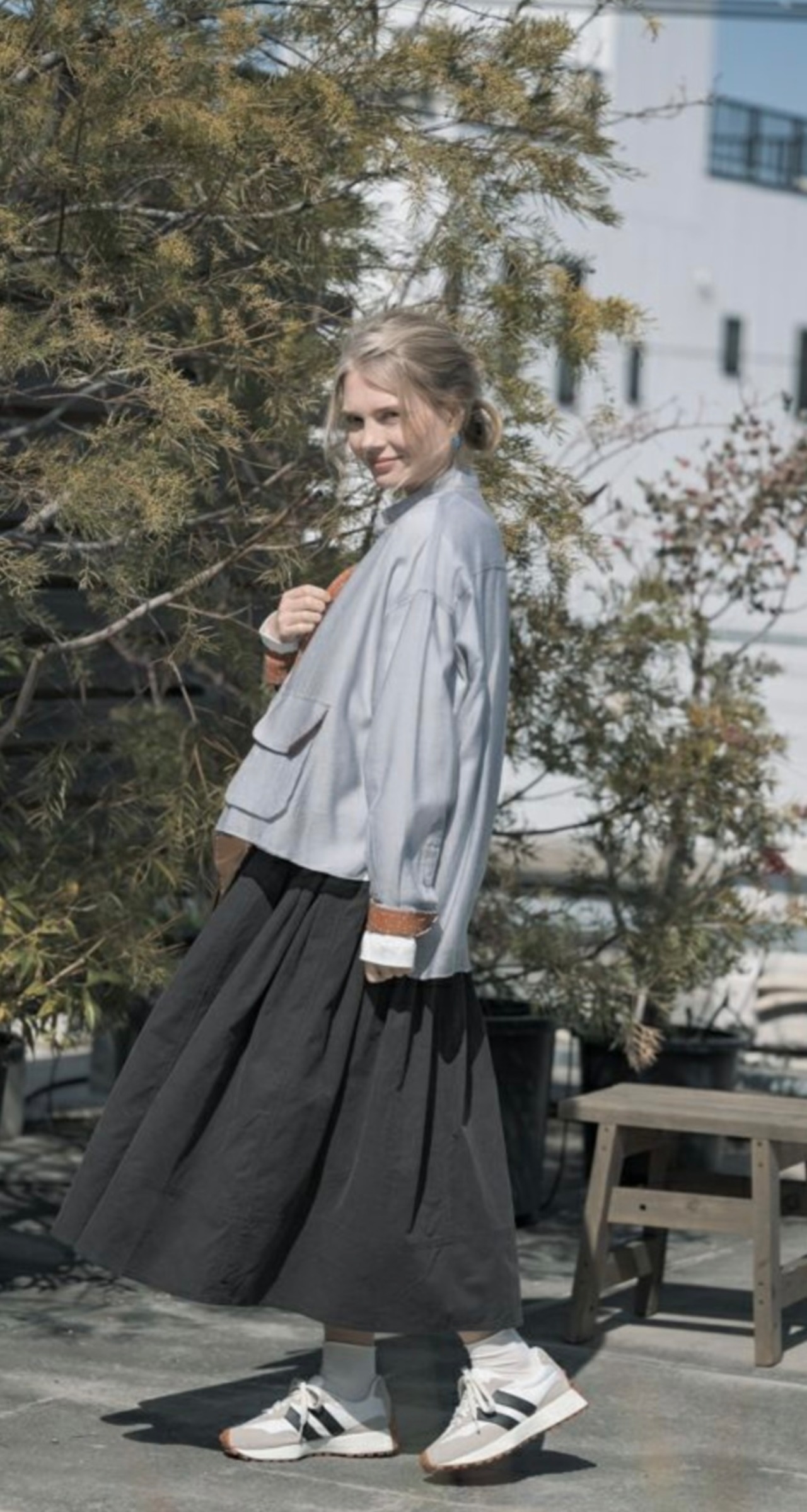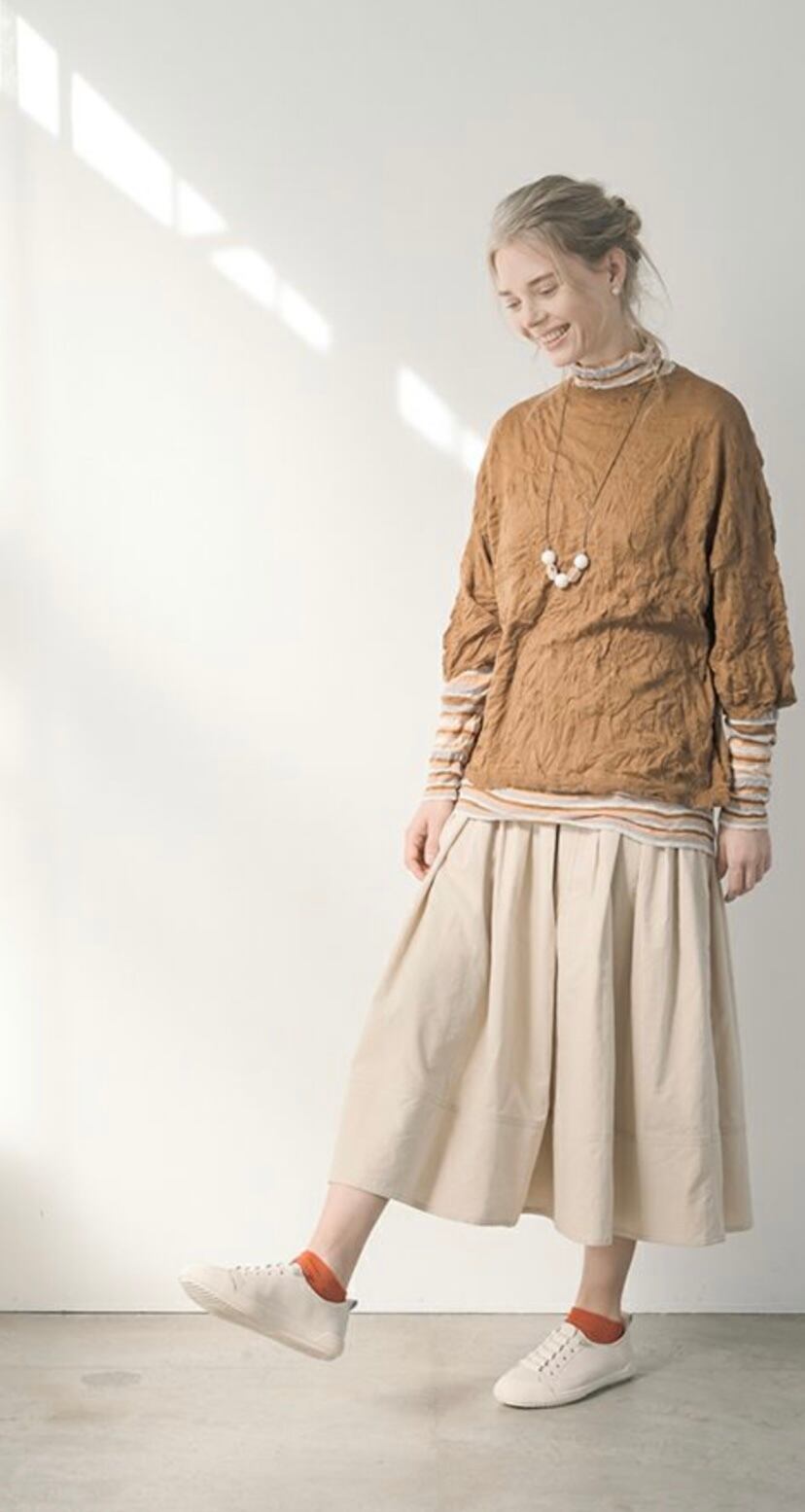 裾幅もゆったりしているので、動くと女性らしい印象です