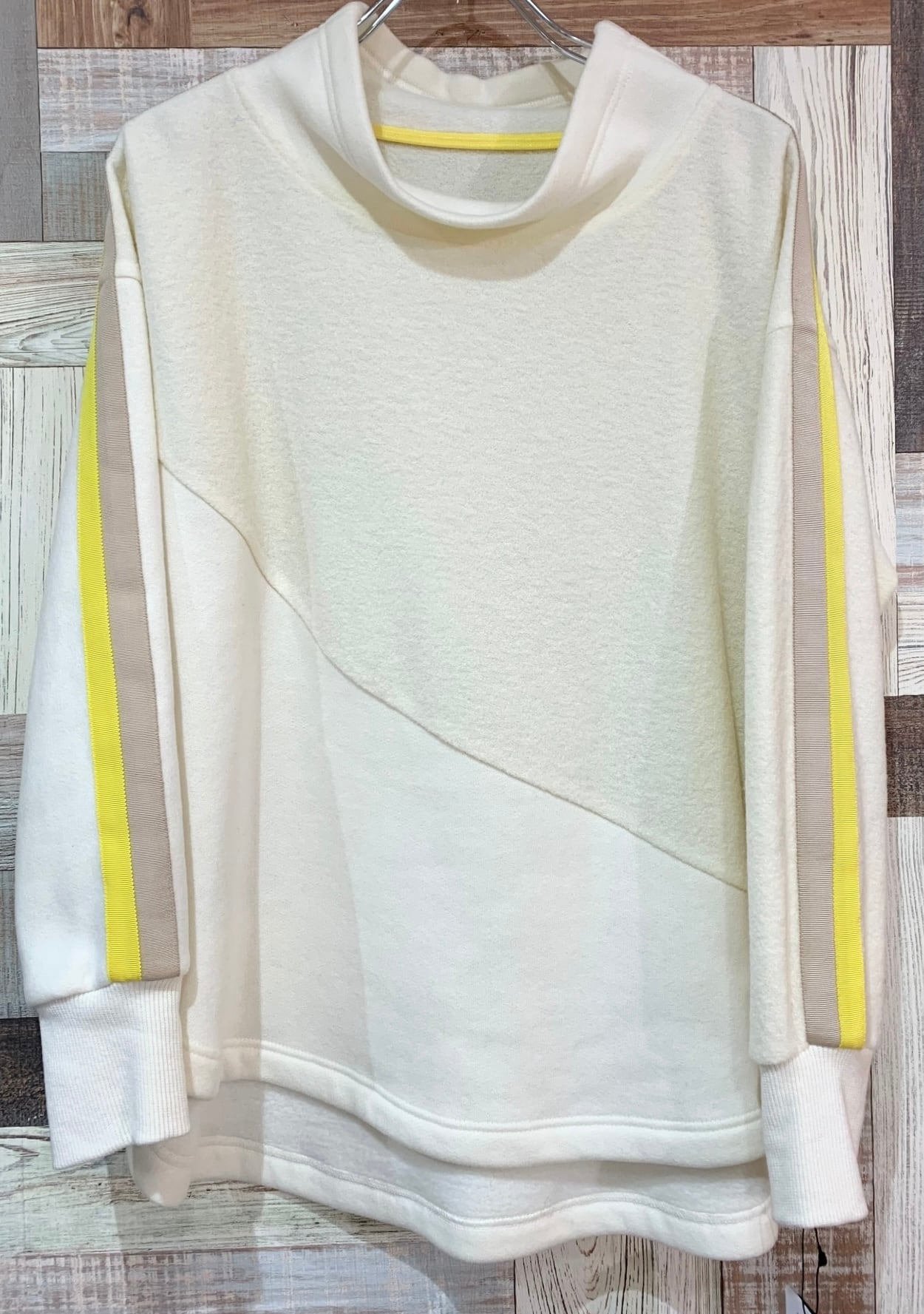 袖リボンテープハイネック切替裏起毛プルオーバー