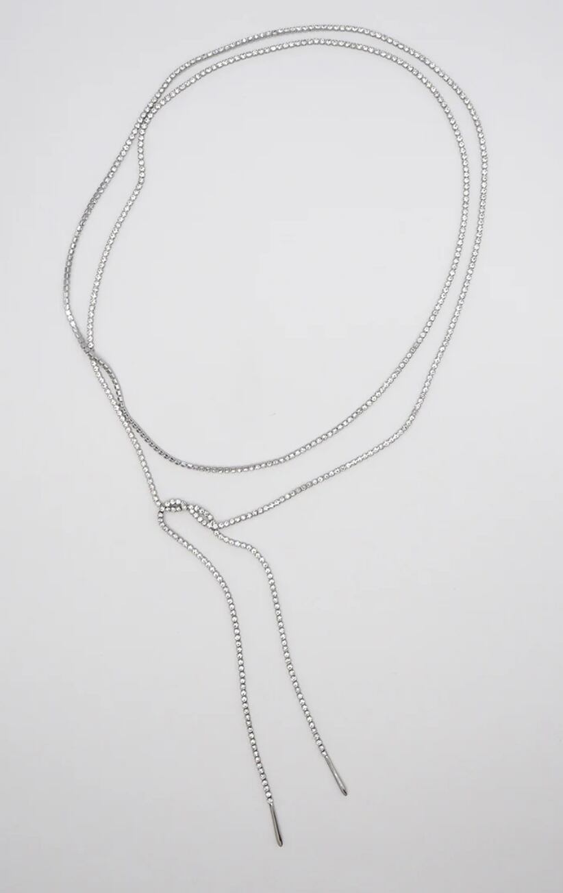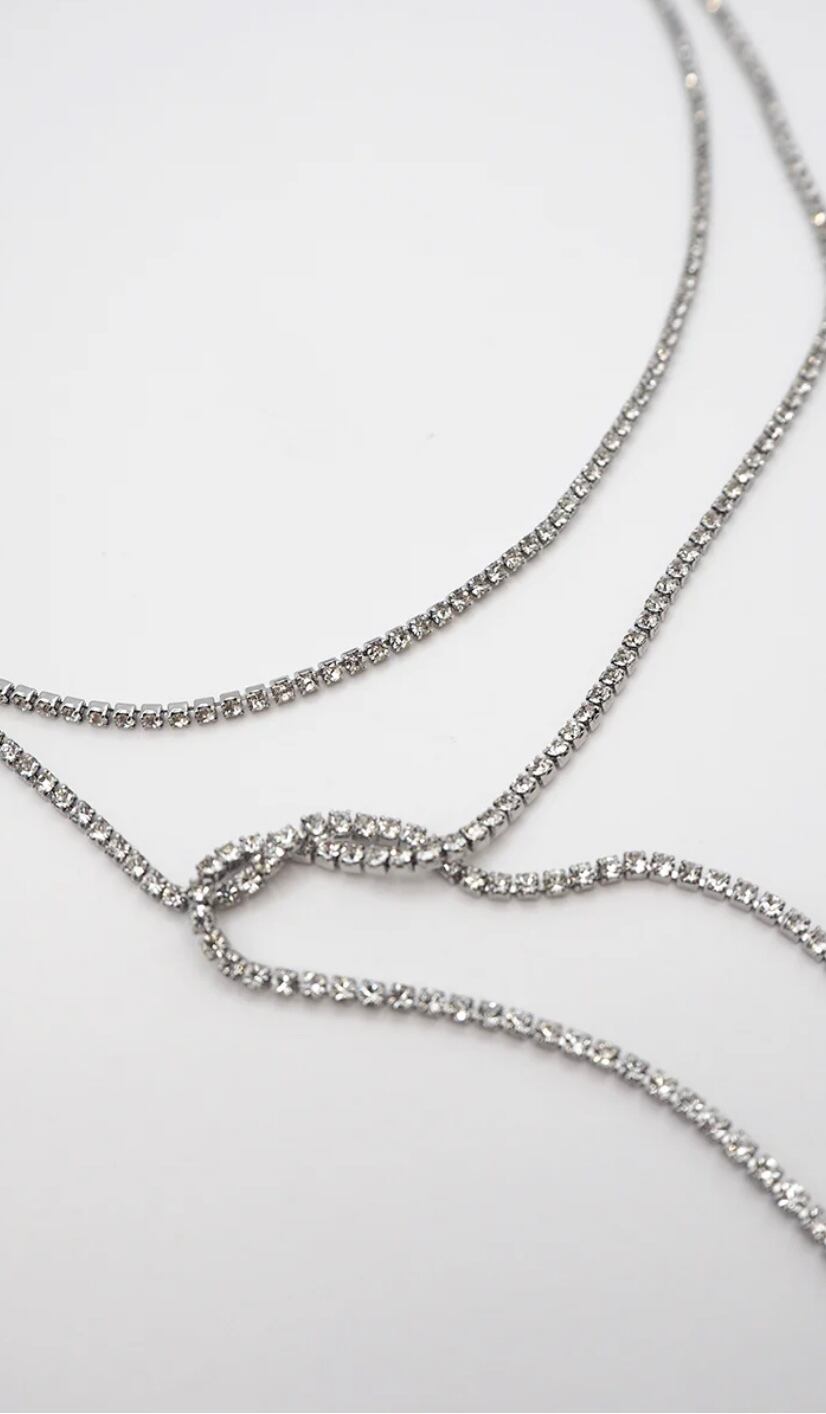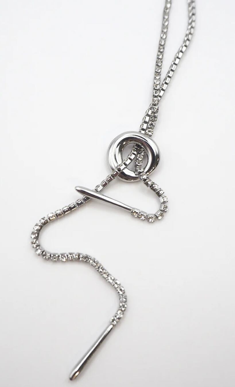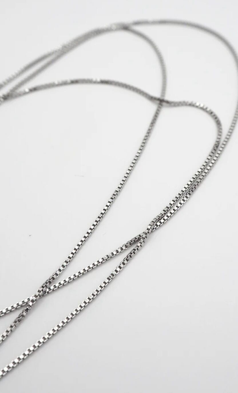 キラキラした連爪ストーンチェーンとボックスチェーンは様々な着け方ができるマルチWAYネックレスになっております。