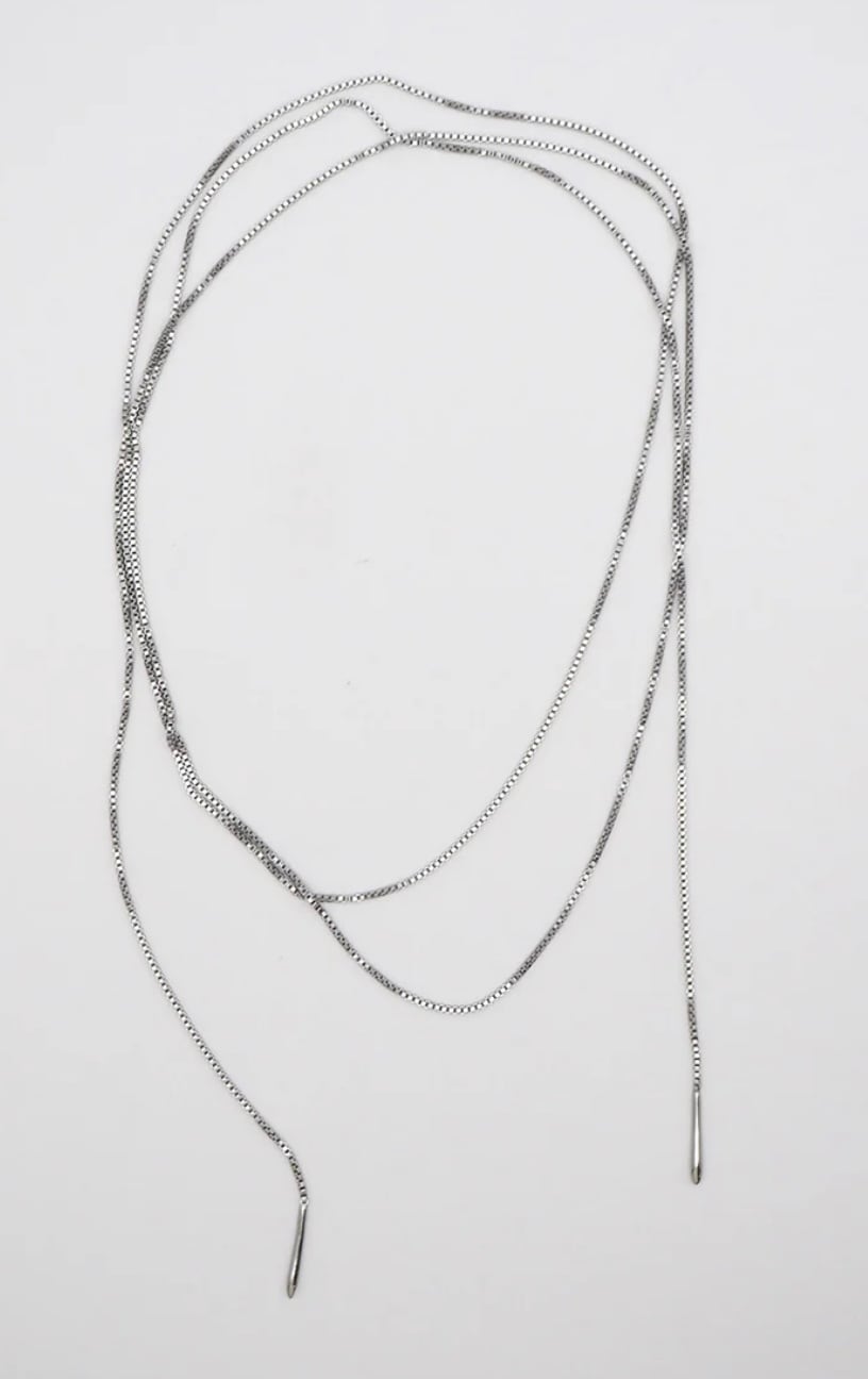 1本のみぐるっと巻き付けて結んだり&垂らしたり、付属のオリジナル輪っかパーツにチェーン1本を通して折り返し→先端2本を輪っかに通してチョーカースタイルにしたりと、その日のコーディネートに合わせて首回りのおしゃれを愉しめます。